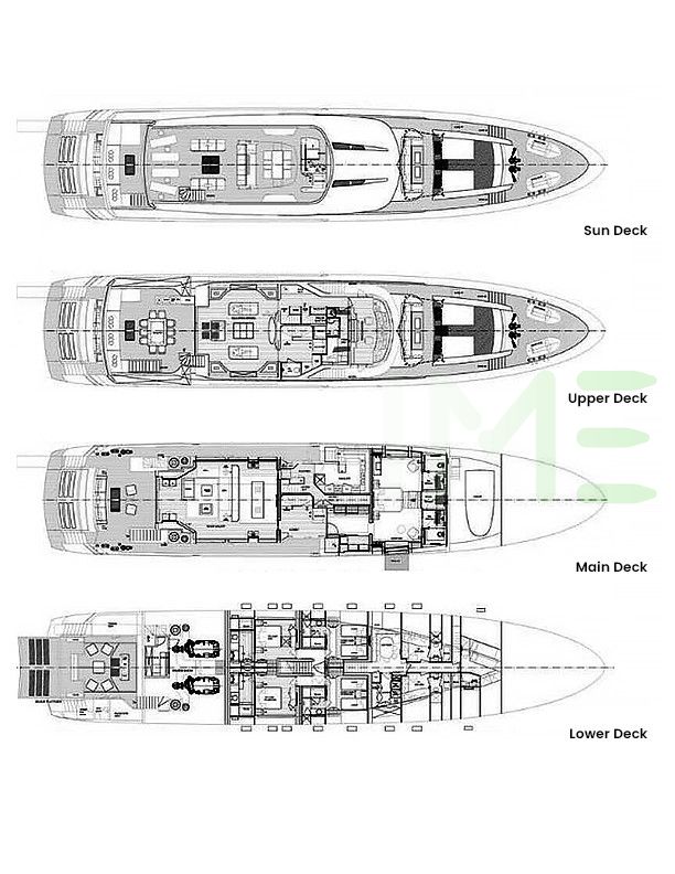 Request plans that include the layout of staterooms, guest areas, and outdoor spaces, as well as crew quarters and work areas.