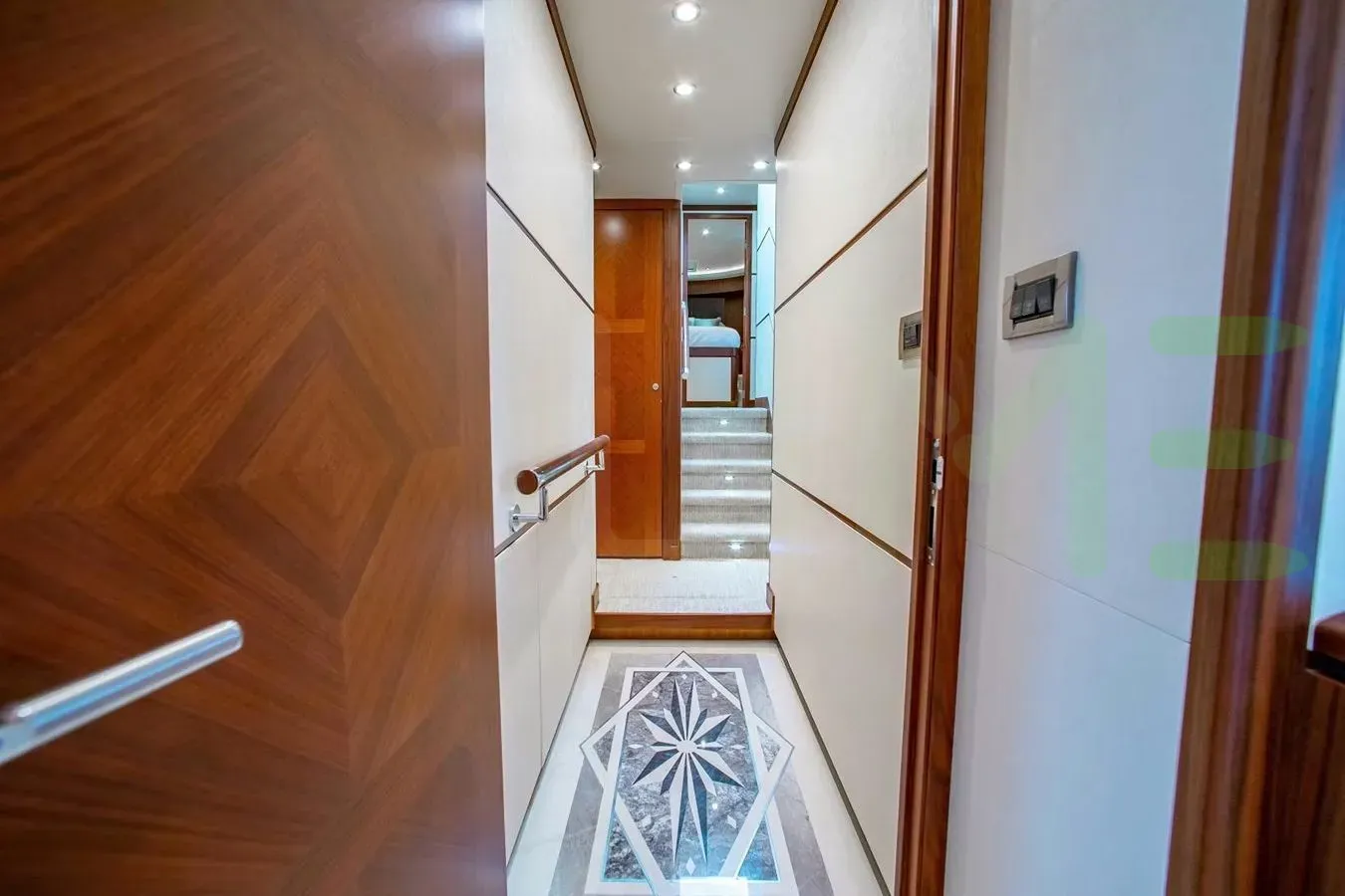 TRINITY is a semi-displacement mono-hull flybridge motoryacht, with a beam of 20' 1" (6.12 meters), offering stability and comfort during near coastal and inland cruising. The semi-displacement hull shape and draft of 5' 11" (1.8 meters) further enhances her speed, allowing quick sprints from port to port, making her ideal for visiting the maximum number of destinations on your itinerary in the shortest period.