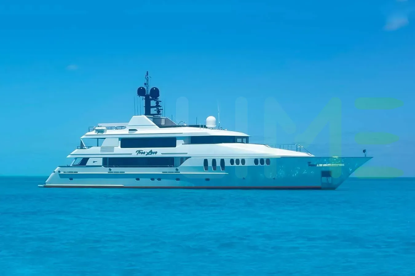 The TRUE LOVE yacht for sale is a 150-foot (46m) luxury motoryacht renewed in 2019, and built in 2003 by yacht builder, Trinity, located in the United States. The styling of the TRUE LOVE yacht features exterior design by Trinity Yachts and interior design by Bonville Associates.