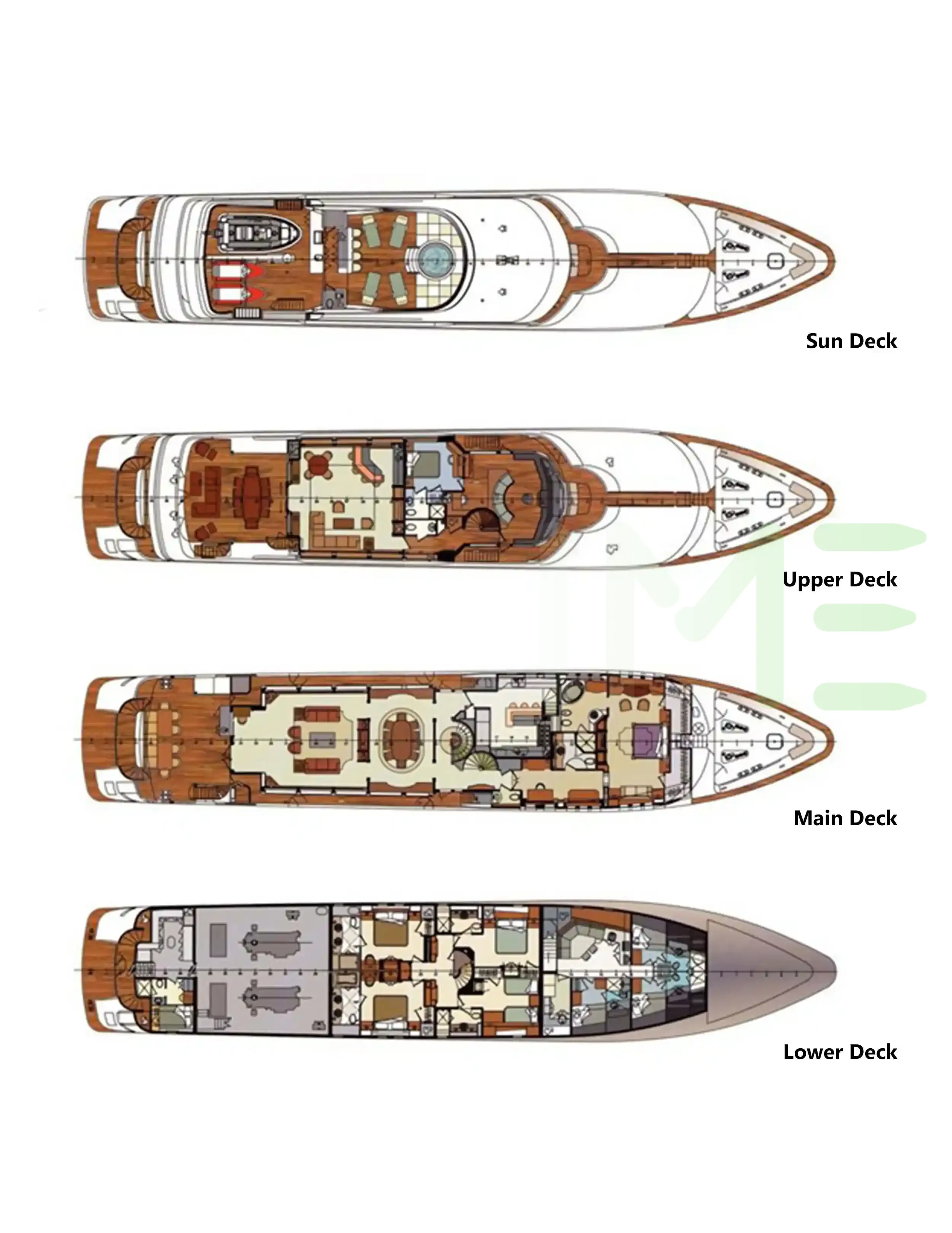 Request plans that include the layout of staterooms, guest areas, and outdoor spaces, as well as crew quarters and work areas.