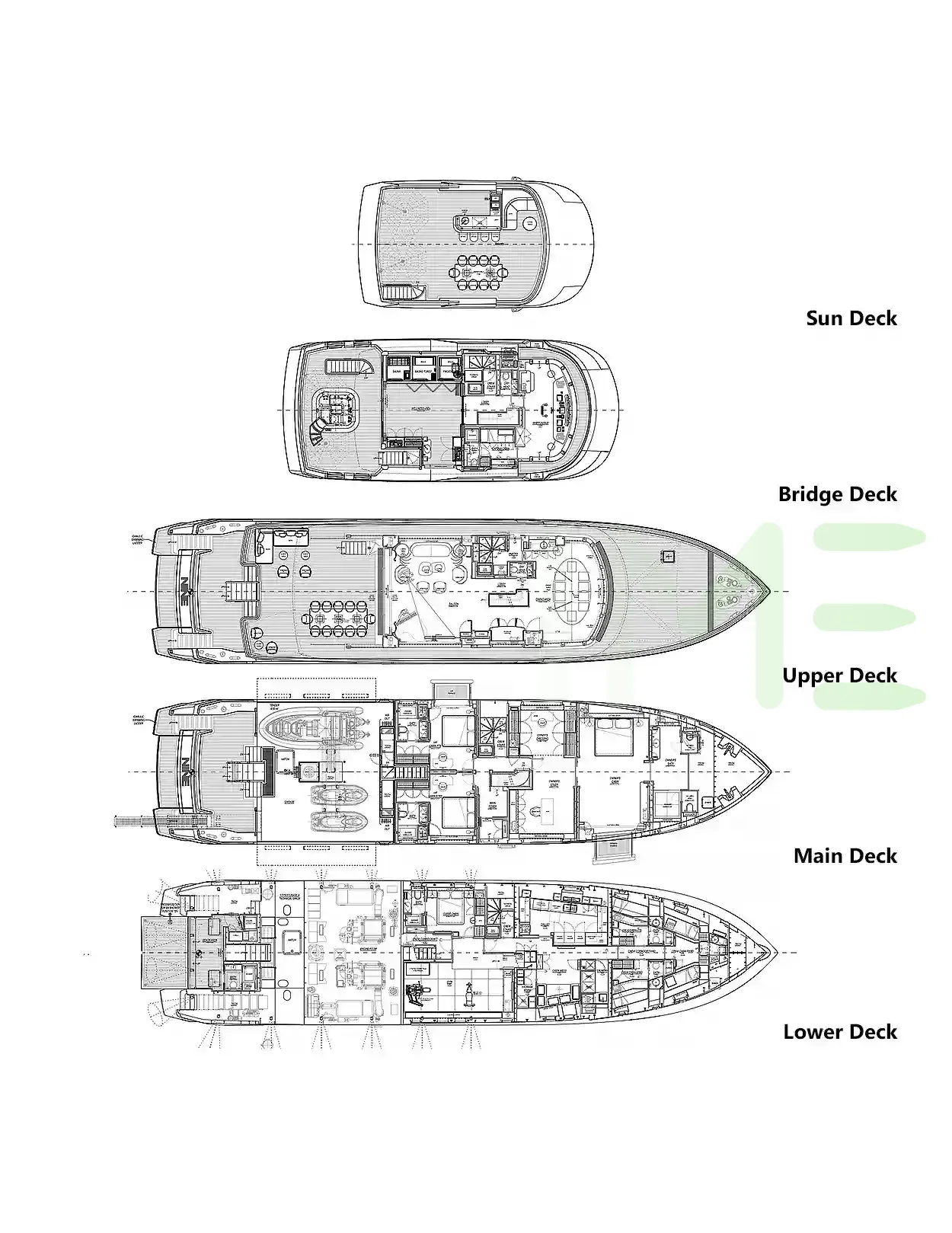 Request plans which include the layout of staterooms, guest areas, and outdoor spaces, as well as crew quarters and working spaces.