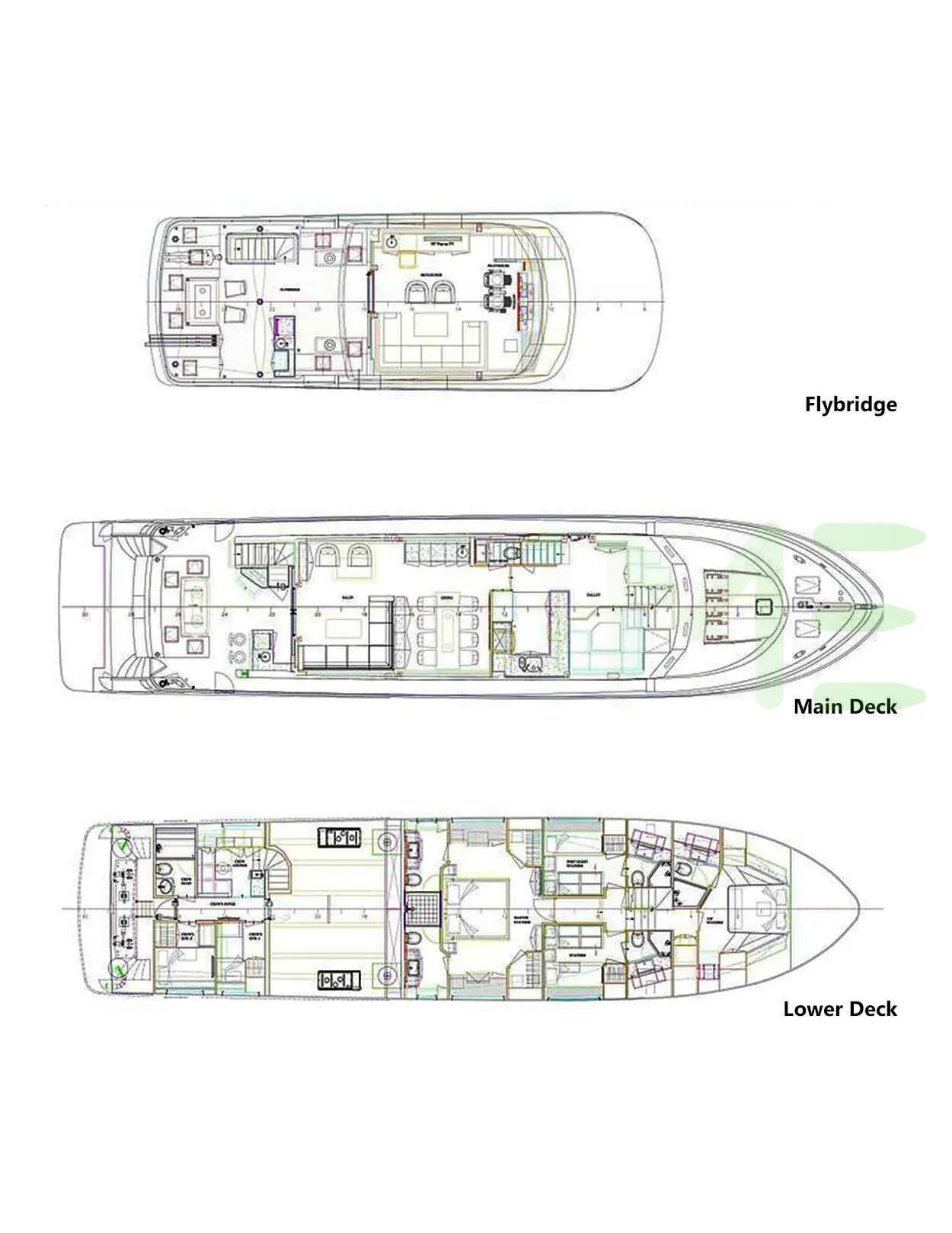 Request plans that include the layout of staterooms, guest areas, and outdoor spaces, as well as crew quarters and work areas.