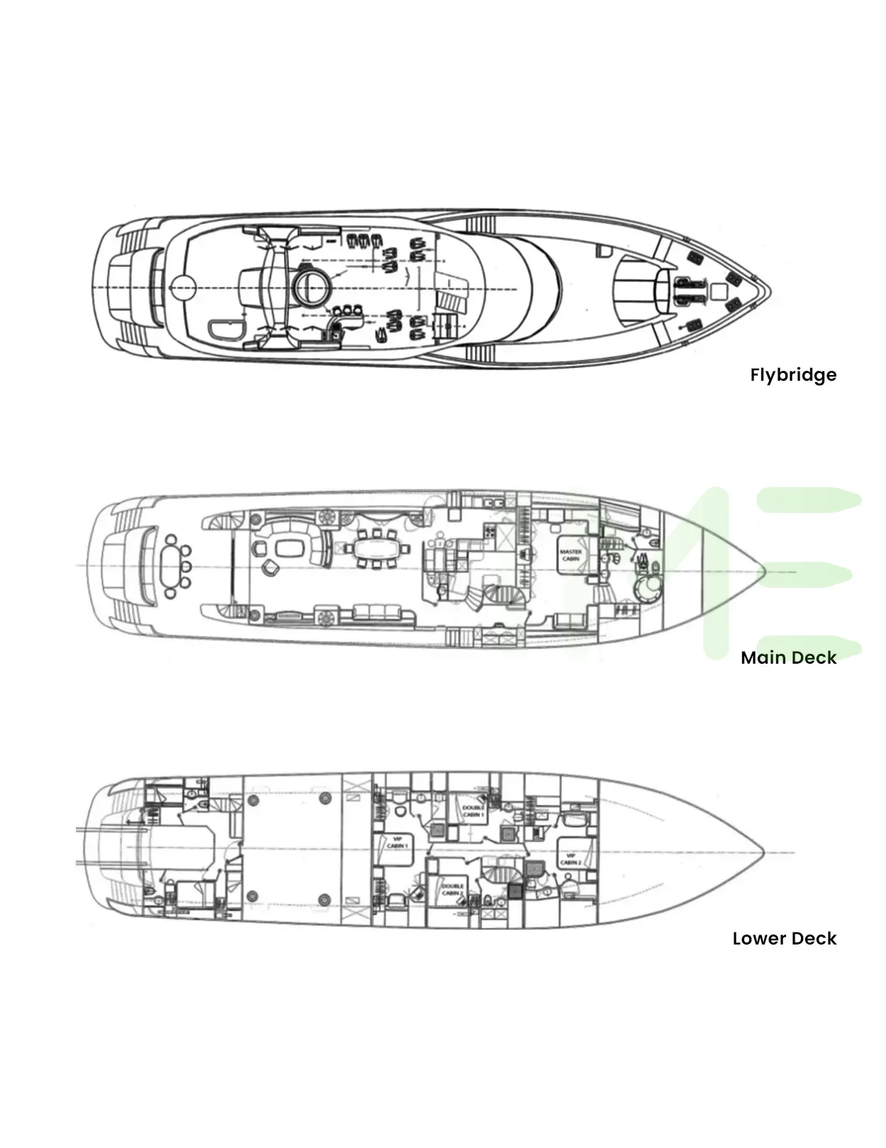 Request plans that include the layout of staterooms, guest areas, and outdoor spaces, as well as crew quarters and work areas.