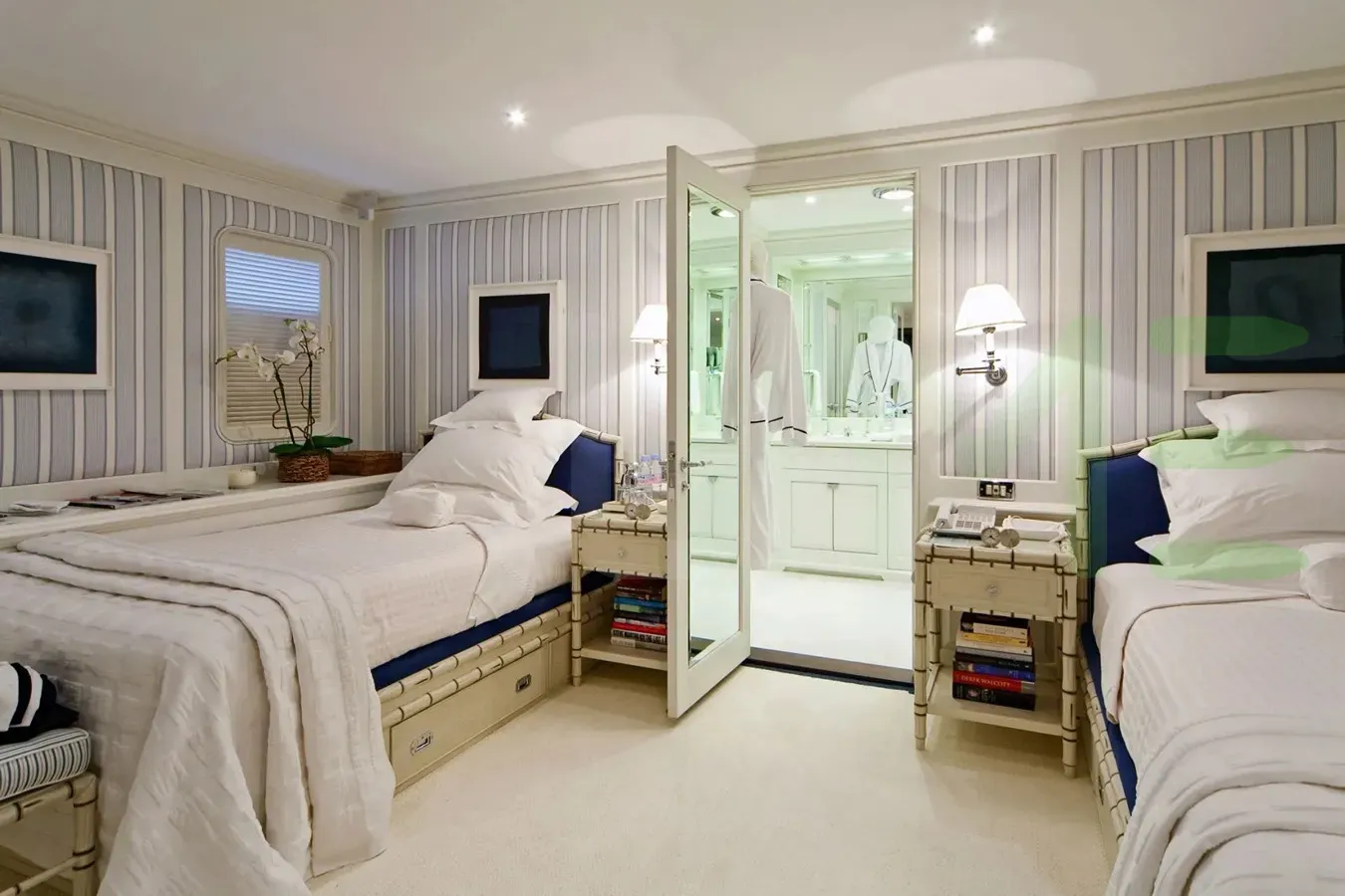 Up to 12 guests can be accommodated on board the yacht VIRGINIAN in 6 staterooms. VIRGINIAN also includes accommodations for 18 crew members, including the yacht’s captain. Whether you envision private escapes or unforgettable voyages, you're invited to discover a world where elegance meets adventure.