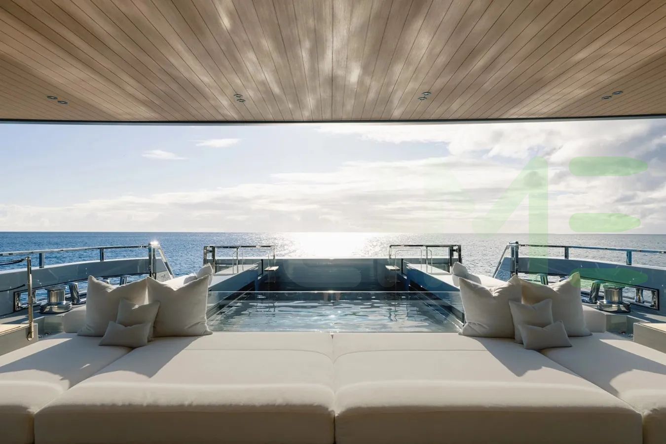 A charter on Virtuosity is comfortable and convenient thanks to the provided amenities, notably a sauna to help you detox and regenerate. Take a plunge in the pool under the sun and even the most discerning of charter guests will enjoy the included beach club. Sit back with a glass of champagne in the deck jacuzzi.
