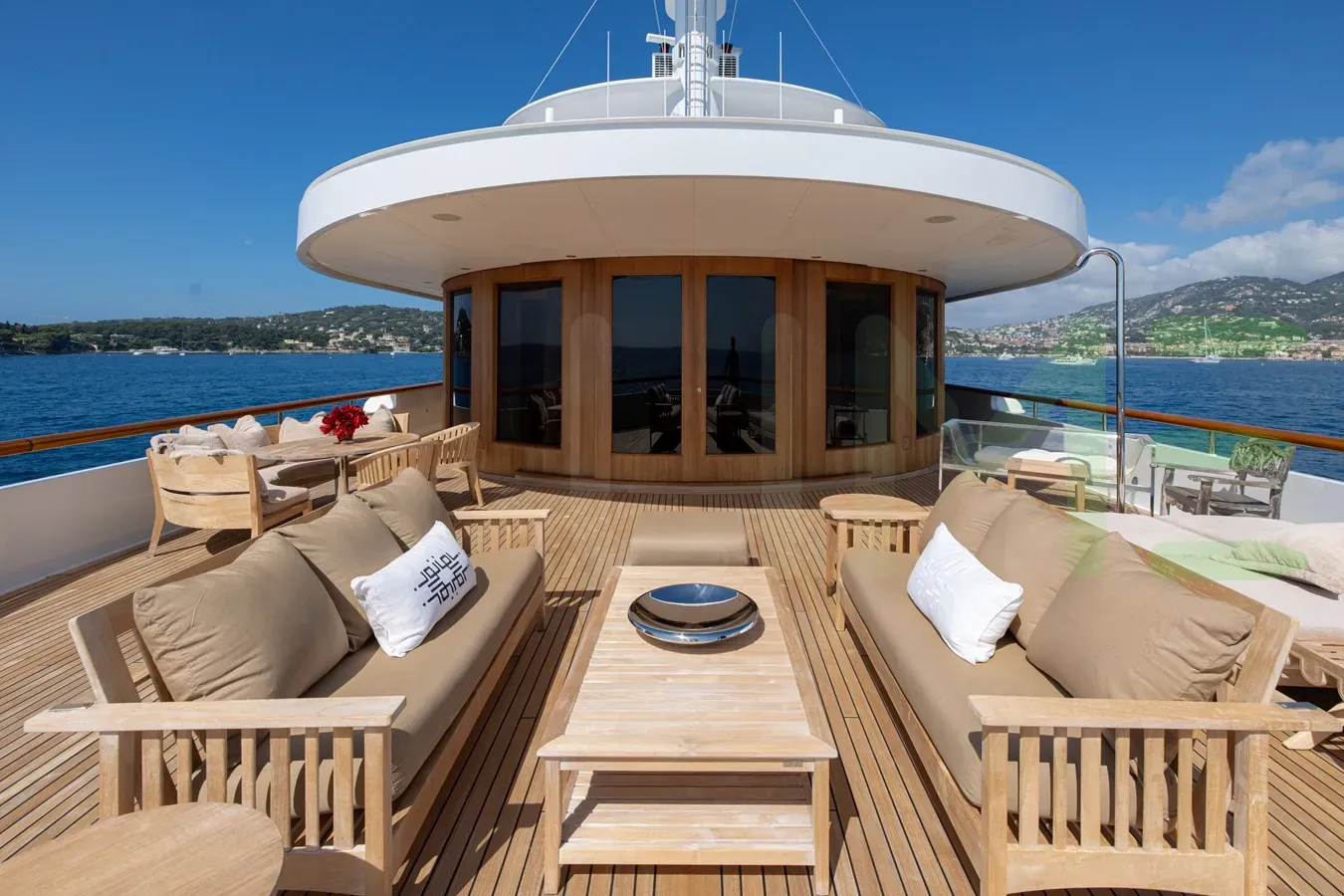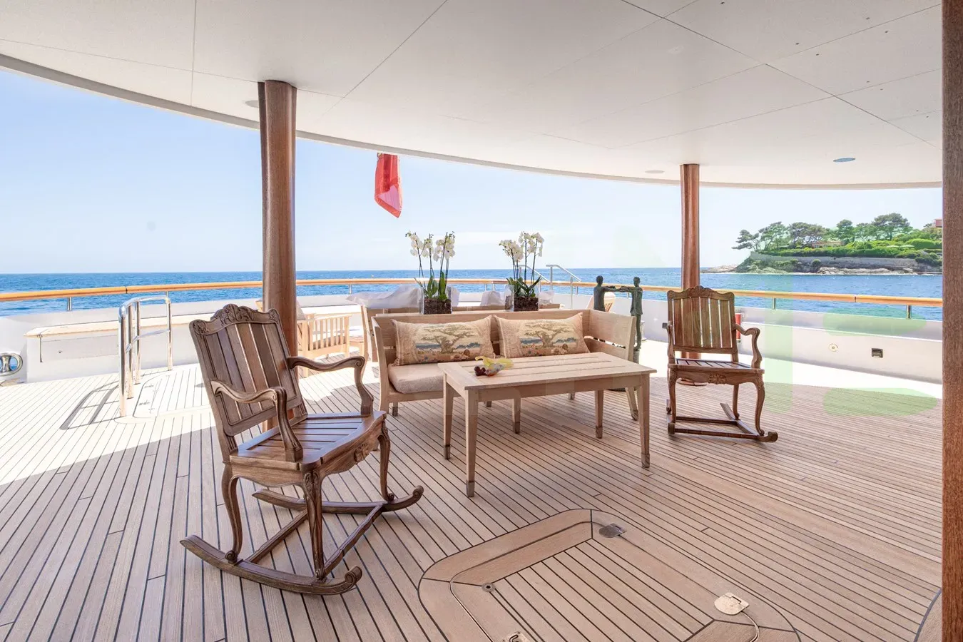 Enhanced by her steel full-displacement hull, and aluminium superstructure, a higher level of seaworthiness and comfort for those on board the WEDGE TOO yacht has been achieved. The visual appeal of the exterior is complimented by the rich color and distinctive grain patterns of teak decks that lend an air of sophistication to the yacht's appearance.