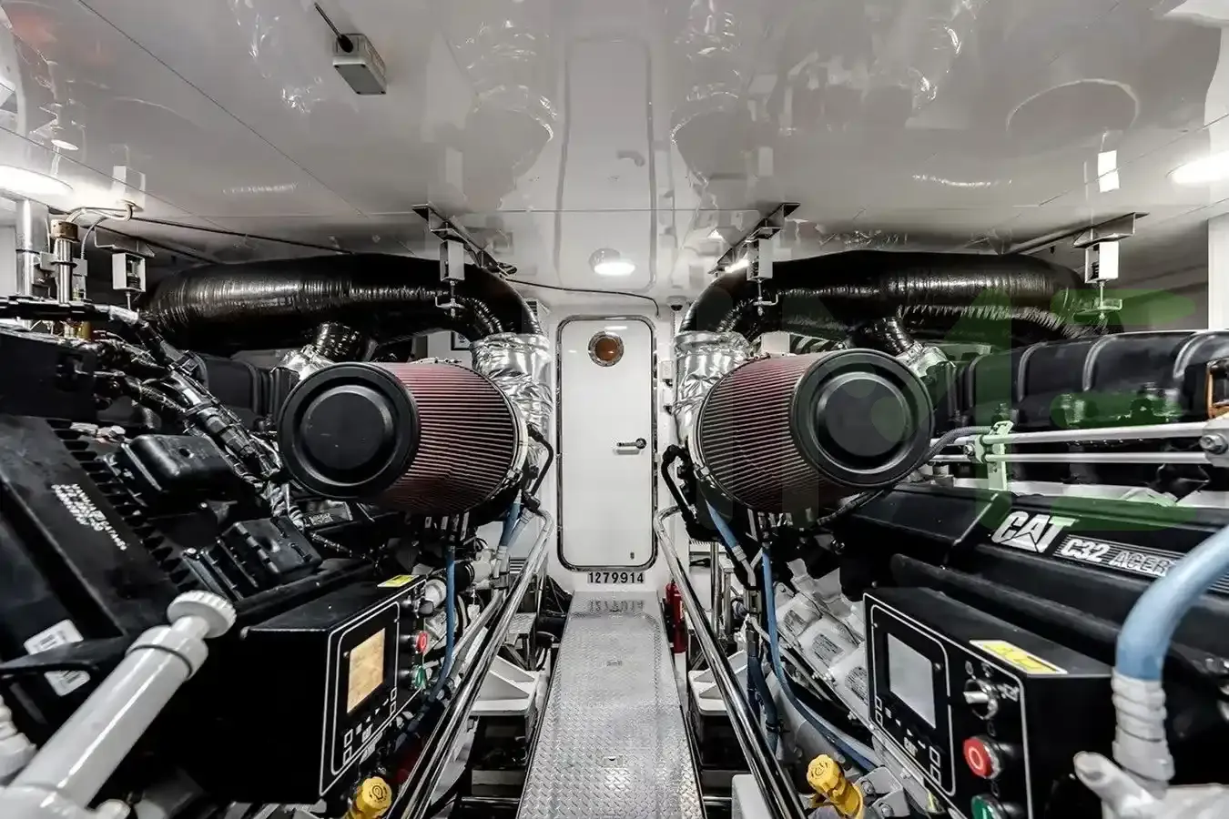 Powered by two Caterpillar main engines, each generating 1,435 horsepower, for a total combined output of 2,870 horsepower. Notably, the WIGGLE ROOM yacht is one of 2,656 yachts greater than 65’(19m) with Caterpillar engines.