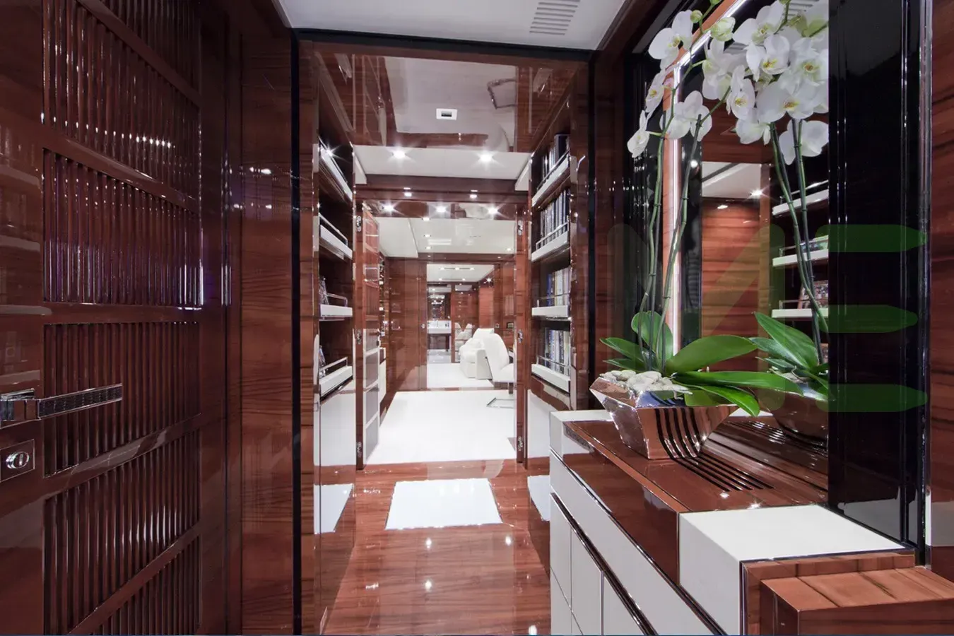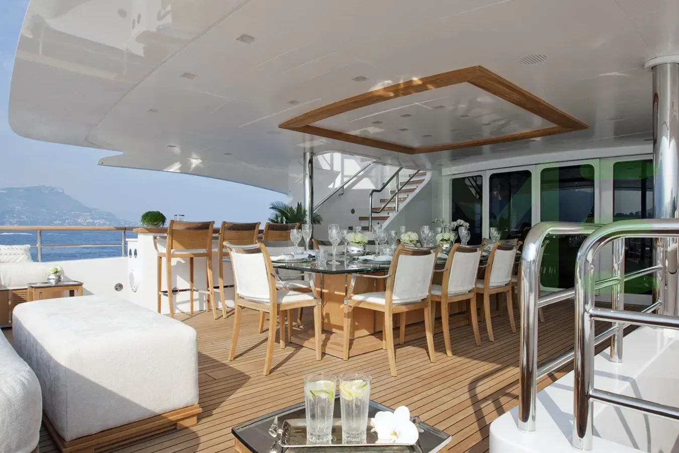 Enhanced by her steel full-displacement hull, and aluminium superstructure, a higher level of seaworthiness and comfort for those on board the WILD ORCHID I yacht has been achieved. The visual appeal of the exterior is complimented by the rich color and distinctive grain patterns of teak decks that lend an air of sophistication to the yacht's appearance.