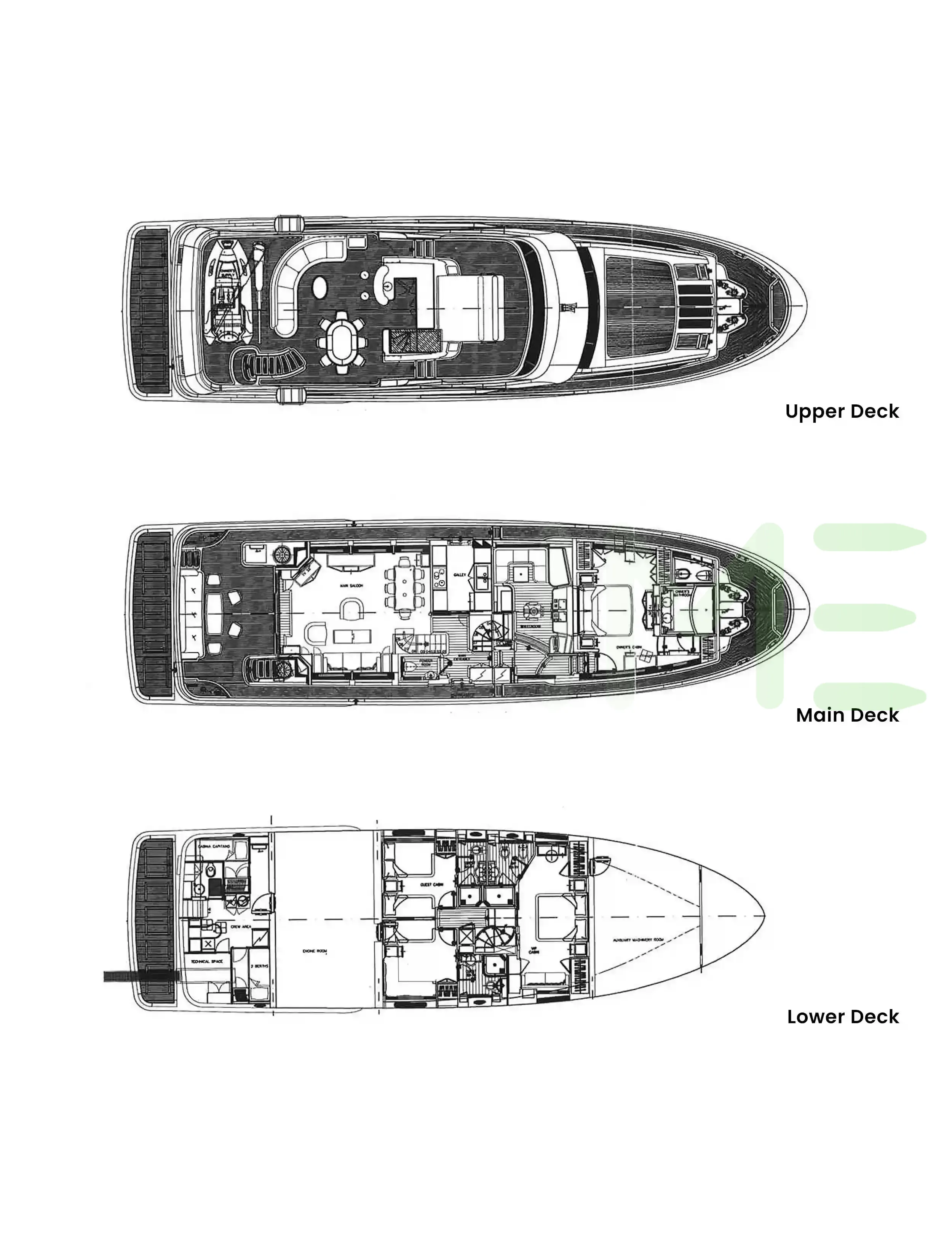 Request plans that include the layout of staterooms, guest areas, and outdoor spaces, as well as crew quarters and work areas.