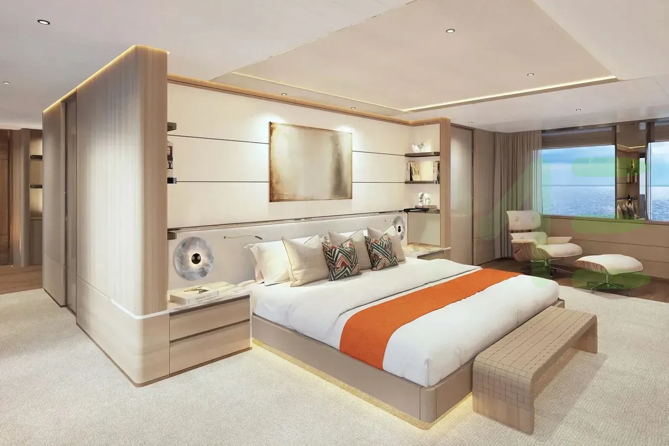 XWAVE is a full-displacement oceangoing mono-hull motoryacht, with a beam of 30' 2" (9.2 meters), offering stability and comfort during blue water open ocean navigation, including near coastal and inland cruising. Her full-displacement hull shape and draft of 8' (2.45 meters) further contribute to a yacht with a longer range, stowage, and a smooth sailing experience, making her ideal for extended journeys and global travel.