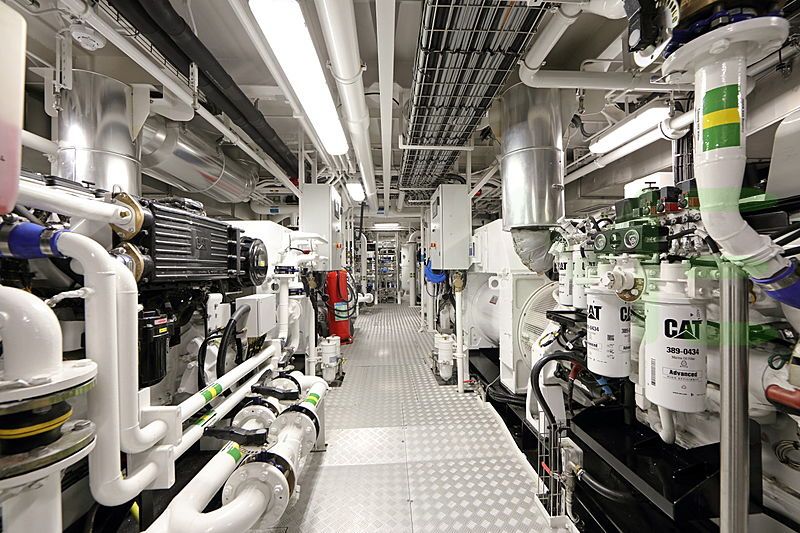 Powered by two Caterpillar main engines, each generating 1,435 horsepower, for a total combined output of 2,870 horsepower. Notably, the YERSIN yacht is one of 2,673 yachts greater than 65’(19m) with Caterpillar engines.
