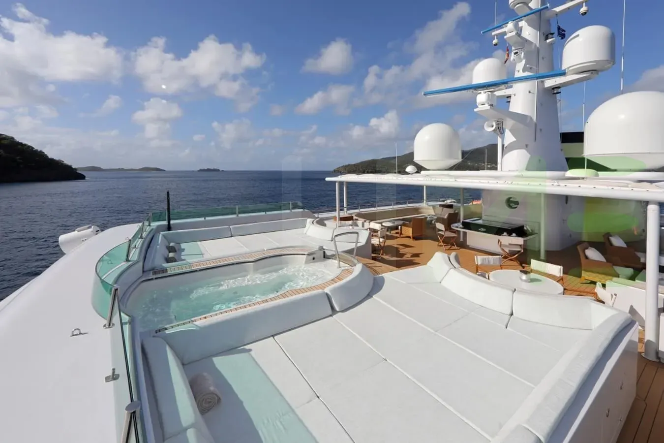 On your charter, you'll find plenty to keep you busy and entertained, particularly a state-of-the-art movie theatre for movie nights. If you're in need of indulgence, the beauty salon offers a range of treatments to pamper and restore. For the ultimate relaxation experience, the yacht plays host to a luxury spa or elsewhere, the swimming pool is perfect for exercising or admiring a romantic sunrise. Maintain your fitness routine and work out in the well-equipped gym and in addition sit back with a glass of champagne in the deck jacuzzi.