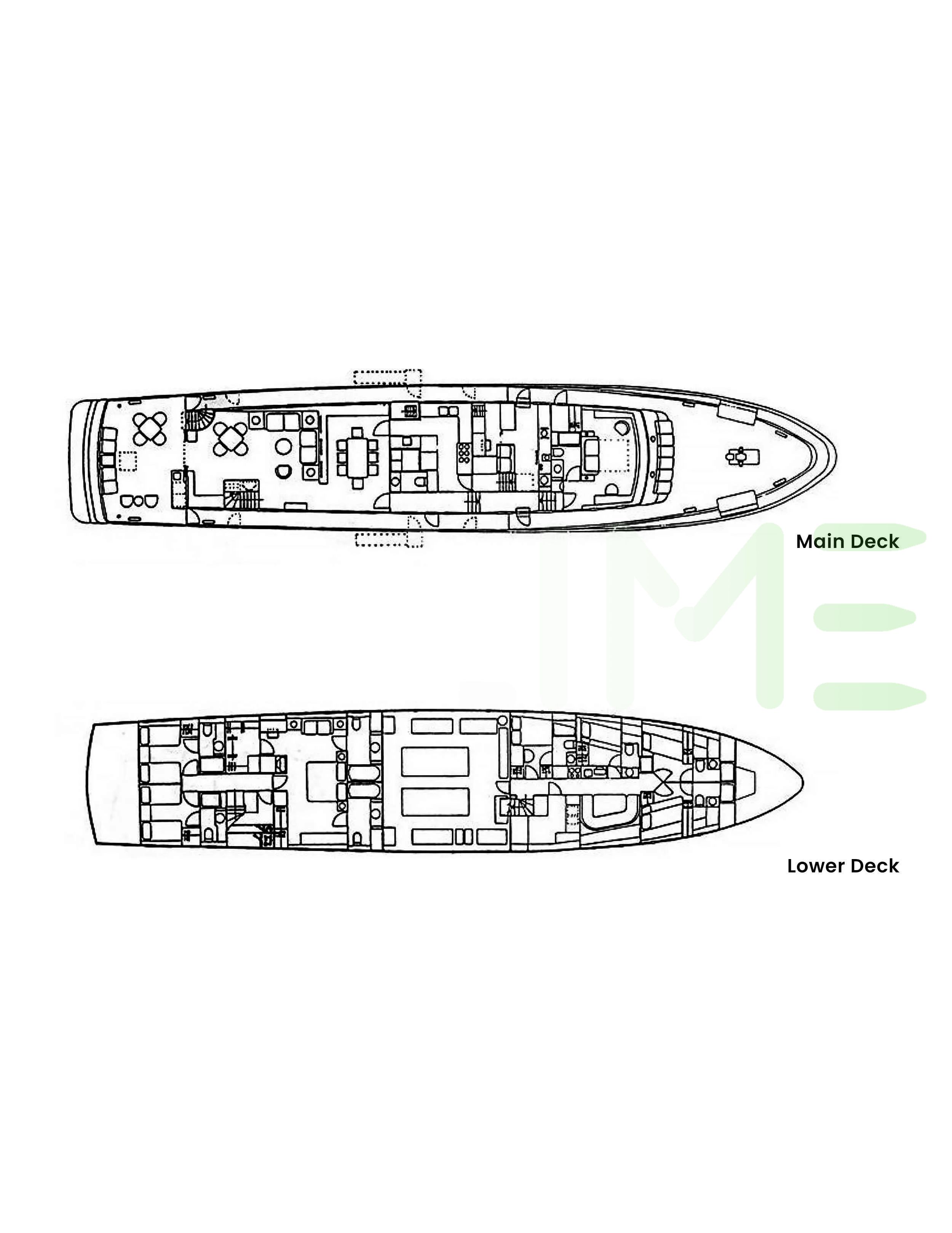 Request plans that include the layout of staterooms, guest areas, and outdoor spaces, as well as crew quarters and work areas.
