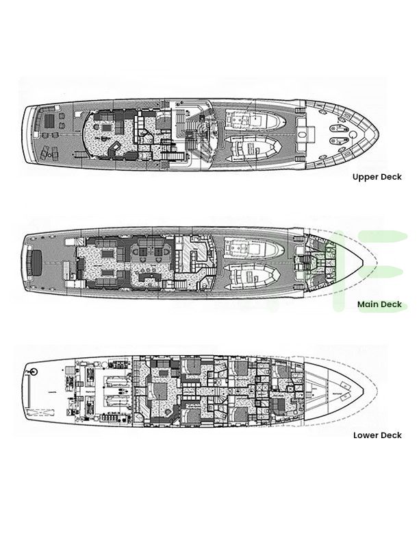 Request plans that include the layout of staterooms, guest areas, and outdoor spaces, as well as crew quarters and work areas.