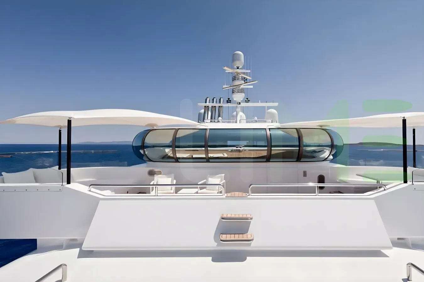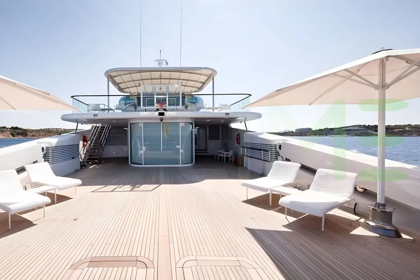 Enhanced by her steel full-displacement hull, and grp superstructure, a higher level of seaworthiness and comfort for those on board the ZEUS yacht has been achieved. The visual appeal of the exterior is complimented by the rich color and distinctive grain patterns of teak decks that lend an air of sophistication to the yacht's appearance.