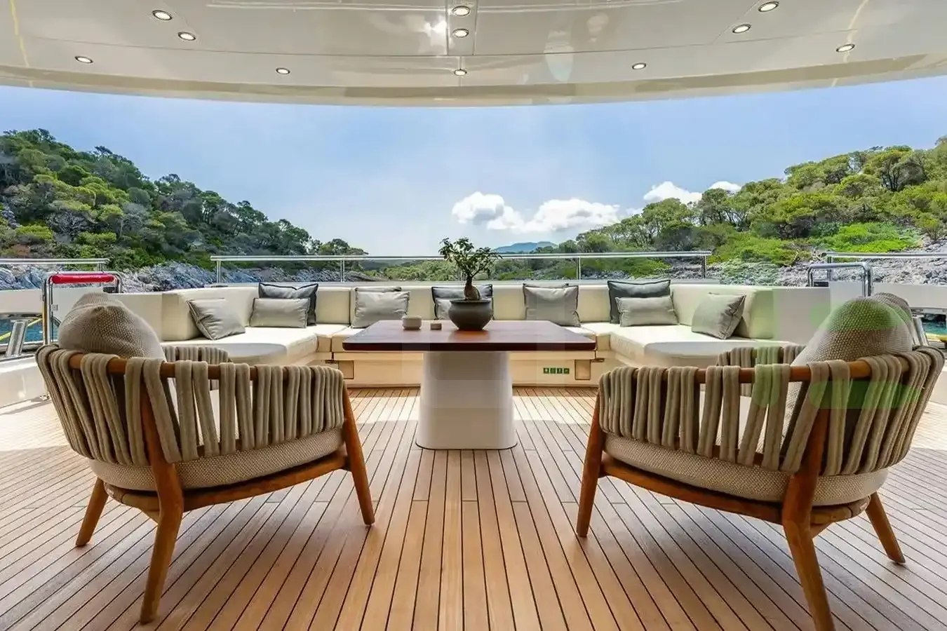 Enhanced by her steel full-displacement hull, and aluminium superstructure, a higher level of seaworthiness and comfort for those on board the ZIA yacht for sale has been achieved. The visual appeal of the exterior is complimented by the rich color and distinctive grain patterns of teak decks that lend an air of sophistication to the yacht's appearance.