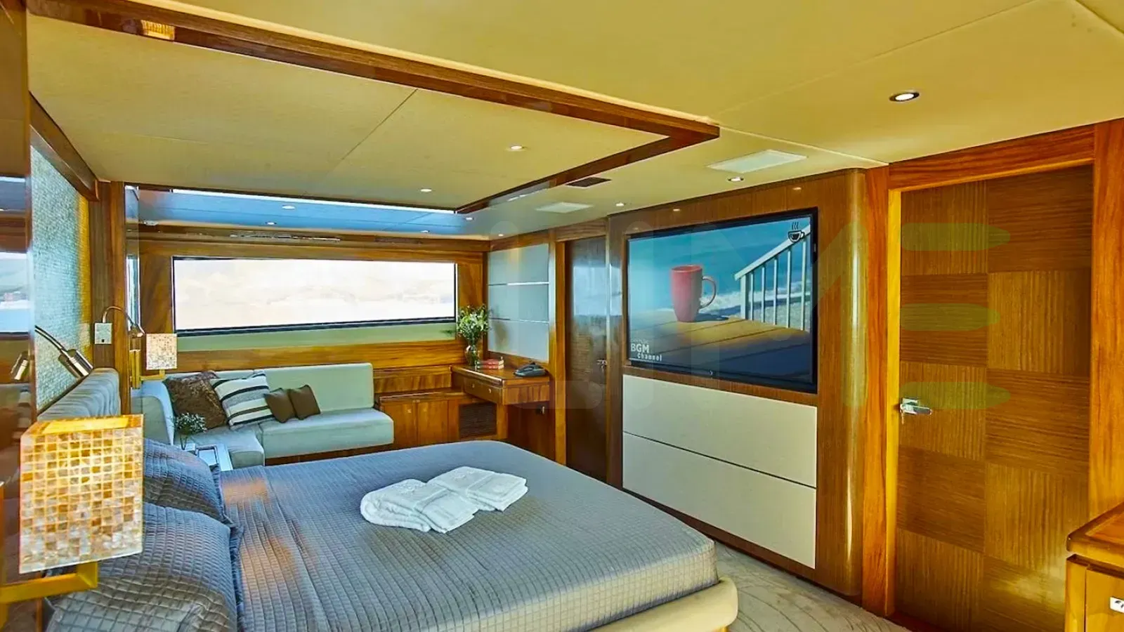 Her features include deck jacuzzi and air conditioning.