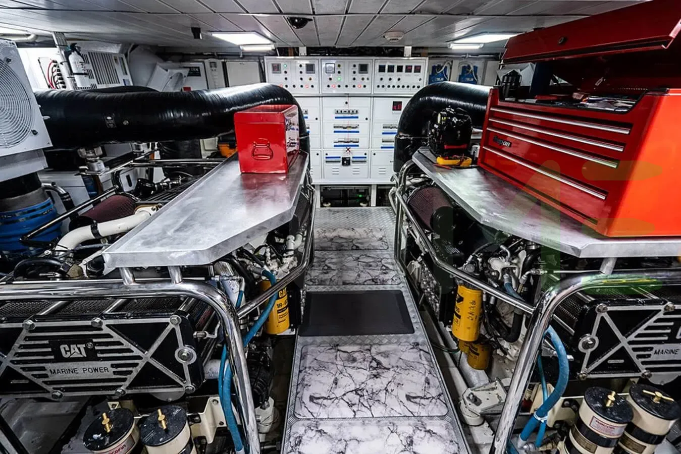 Powered by two Caterpillar main engines, each generating 1,435 horsepower, for a total combined output of 2,870 horsepower. Notably, the BM yacht is one of 2,691 yachts greater than 65’(19m) with Caterpillar engines.