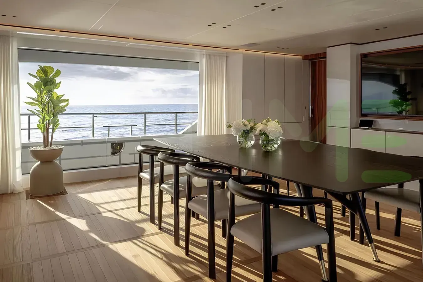The styling of the CADA DIA yacht features exterior design by RWD and interior design by Bonetti / Kozerski architecture DPC. CADA DIA also has accommodations for 9 crew members, including the yacht’s captain.