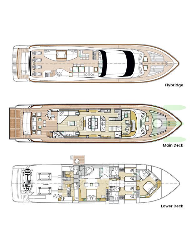 Request plans that include the layout of staterooms, guest areas, and outdoor spaces, as well as crew quarters and work areas.