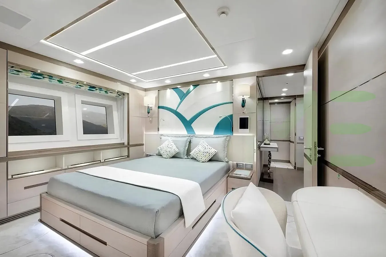 The styling of the CHARADE yacht features exterior design by Stefano Righini Design and interior design by RWD. CHARADE also has accommodations for 7 crew members, including the yacht’s captain.