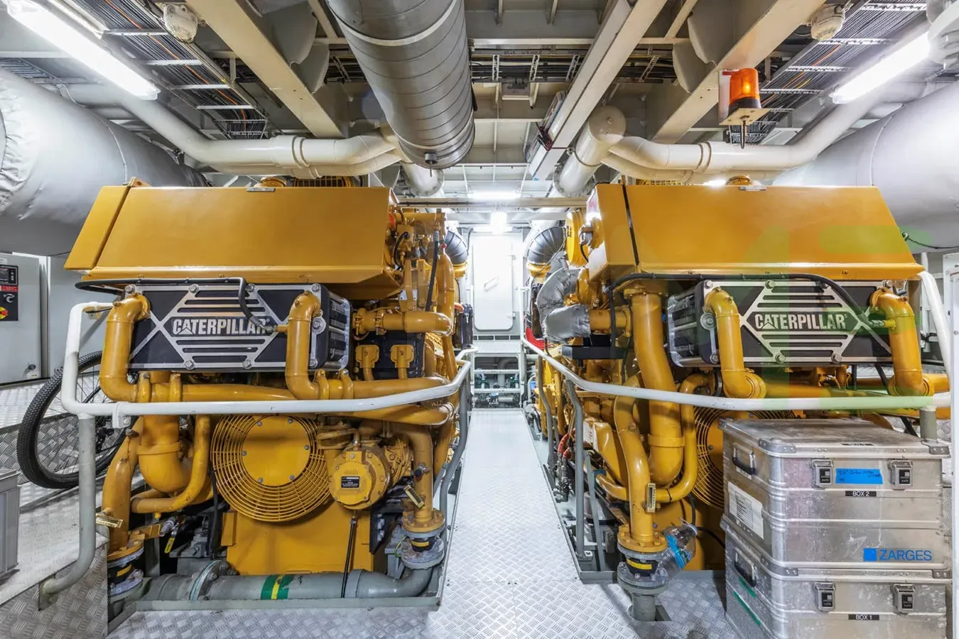 Powered by four Caterpillar main engines, each generating 1,060 horsepower, for a total combined output of 4,240 horsepower. Notably, the CHASING ROMANCE yacht is one of 2,691 yachts greater than 65’(19m) with Caterpillar engines.