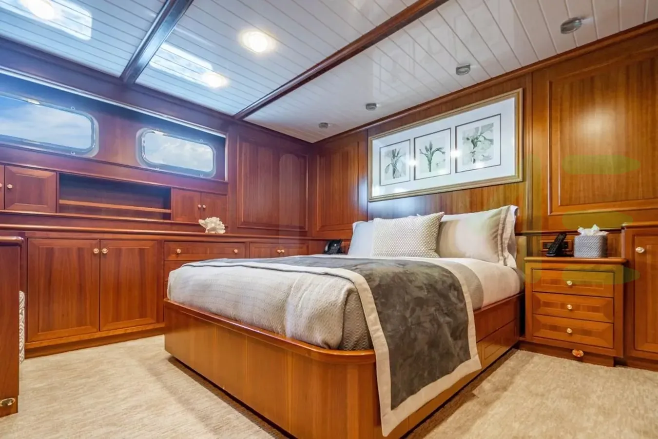 Measuring in at a length of 155' 10" (47.5m) and boasting a beam of 29' (8.85m), DRAMA QUEEN's grandeur is matched only by her spaciousness. Her draft of 8' 11" (2.72m) allows for an interior volume of 482 GRT (gross registered tons) which contributes to her exceptional performance on the open ocean.
