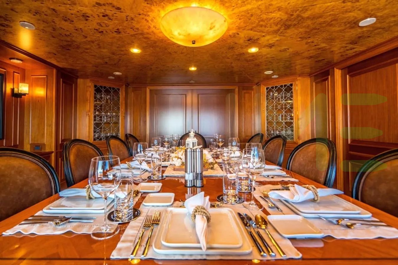 Measuring in at a length of 155' 10" (47.5m) and boasting a beam of 29' (8.85m), DRAMA QUEEN's grandeur is matched only by her spaciousness. Her draft of 8' 11" (2.72m) allows for an interior volume of 482 GRT (gross registered tons) which contributes to her exceptional performance on the open ocean.