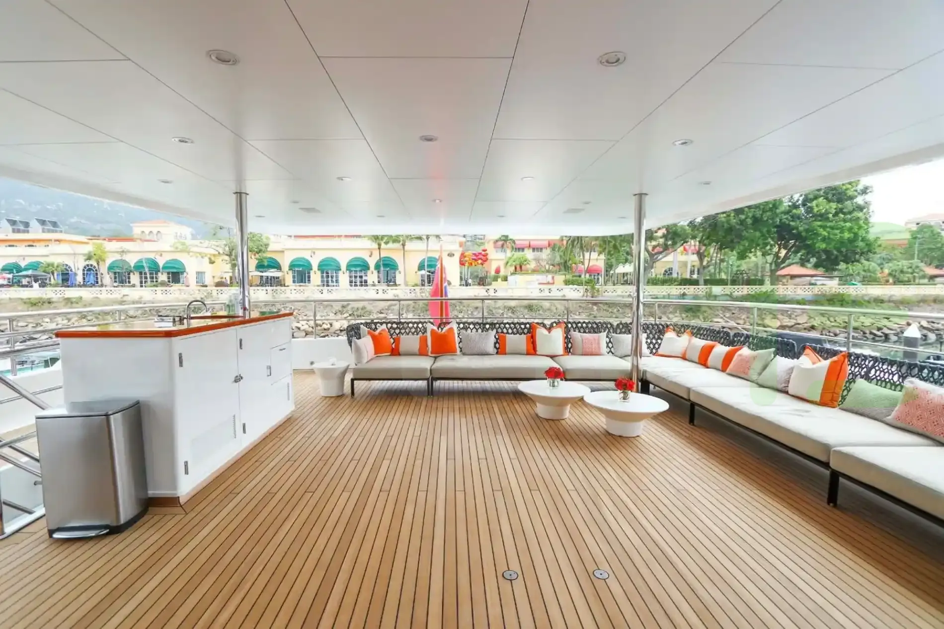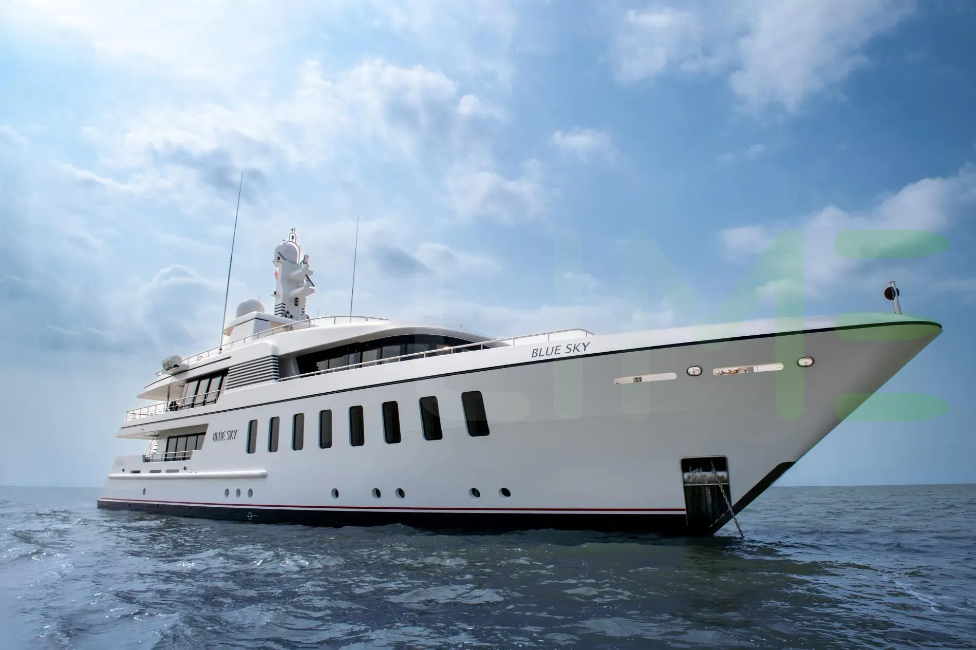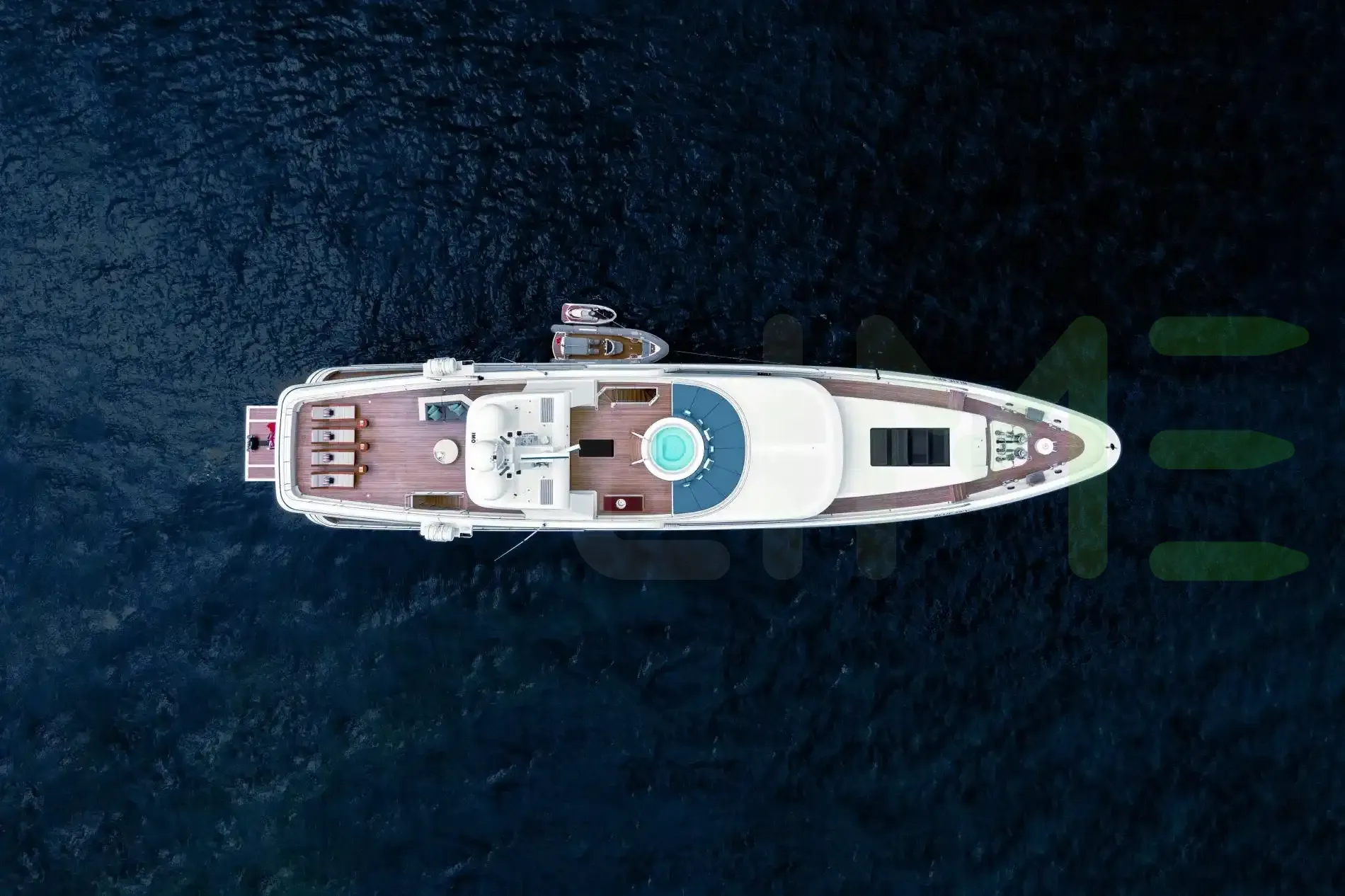 Her features include underwater lights, deck jacuzzi, WiFi and air conditioning.