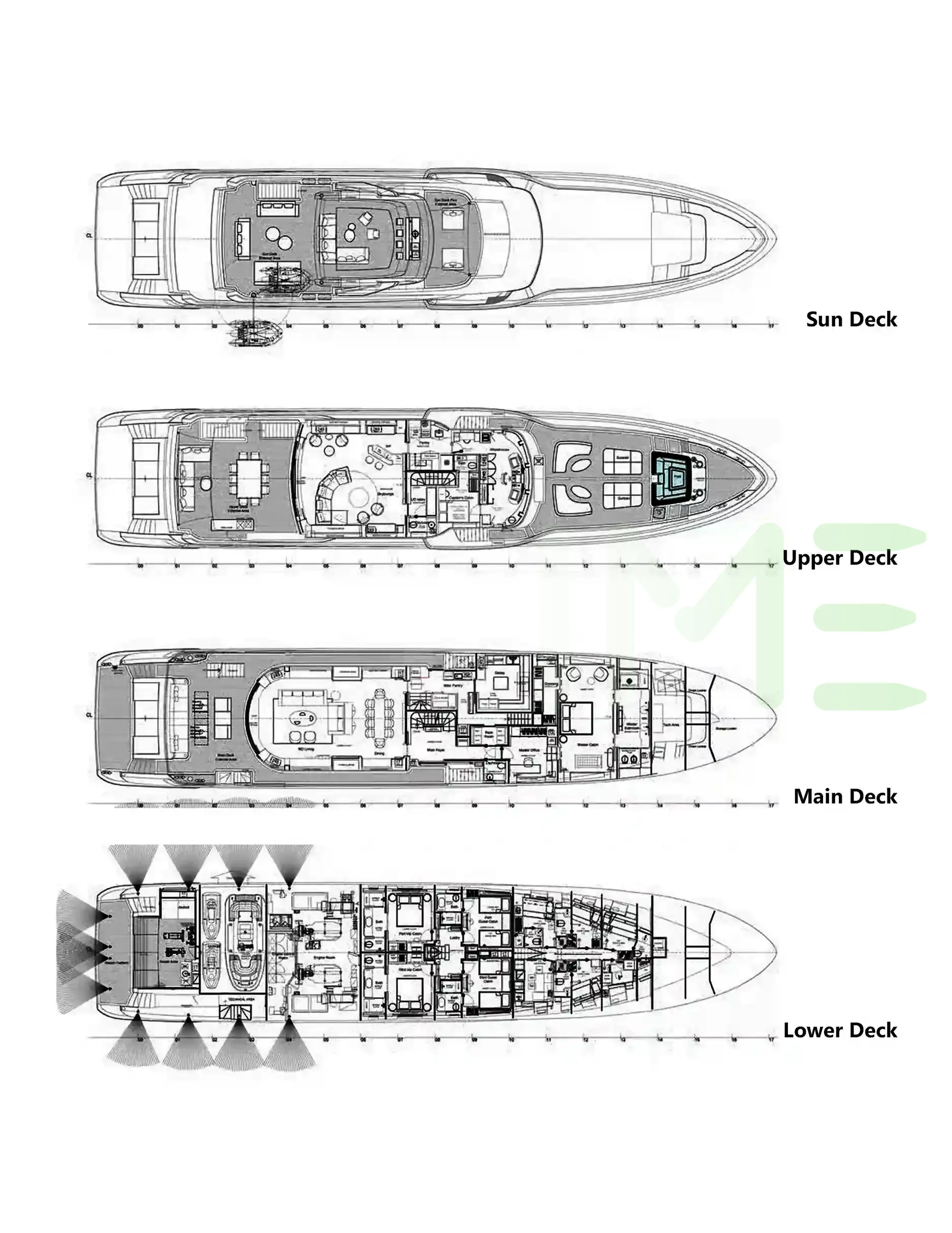 Request plans that include the layout of staterooms, guest areas, and outdoor spaces, as well as crew quarters and work areas.