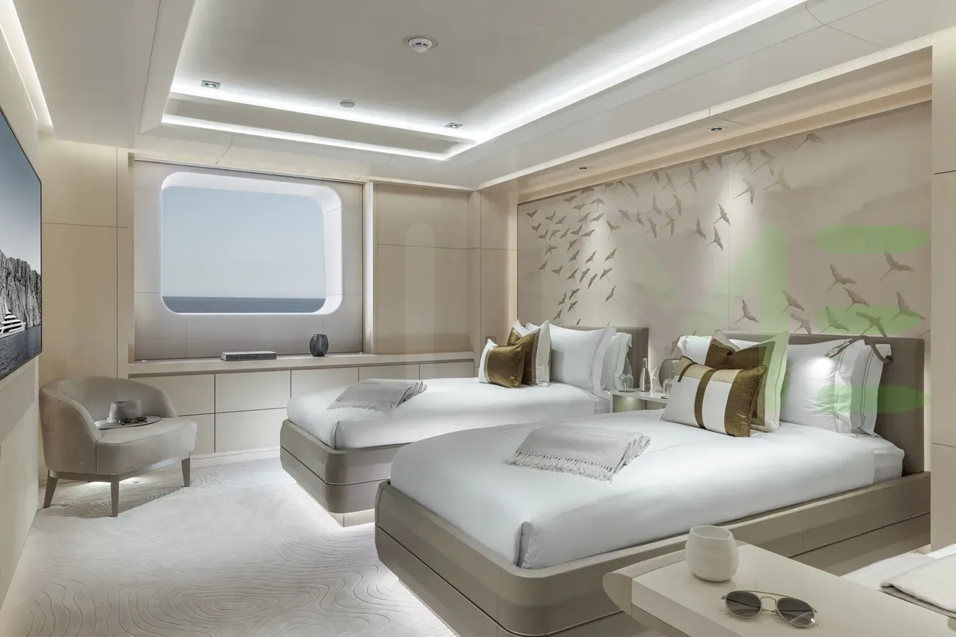 The styling of the H3 yacht features exterior design by Reymond Langton Design Ltd. and interior design by Reymond Langton Design Ltd.. Up to 20 guests can be accommodated on board the superyacht H3 in 10 staterooms. H3 also has accommodations for 31 crew members, including the yacht’s captain.