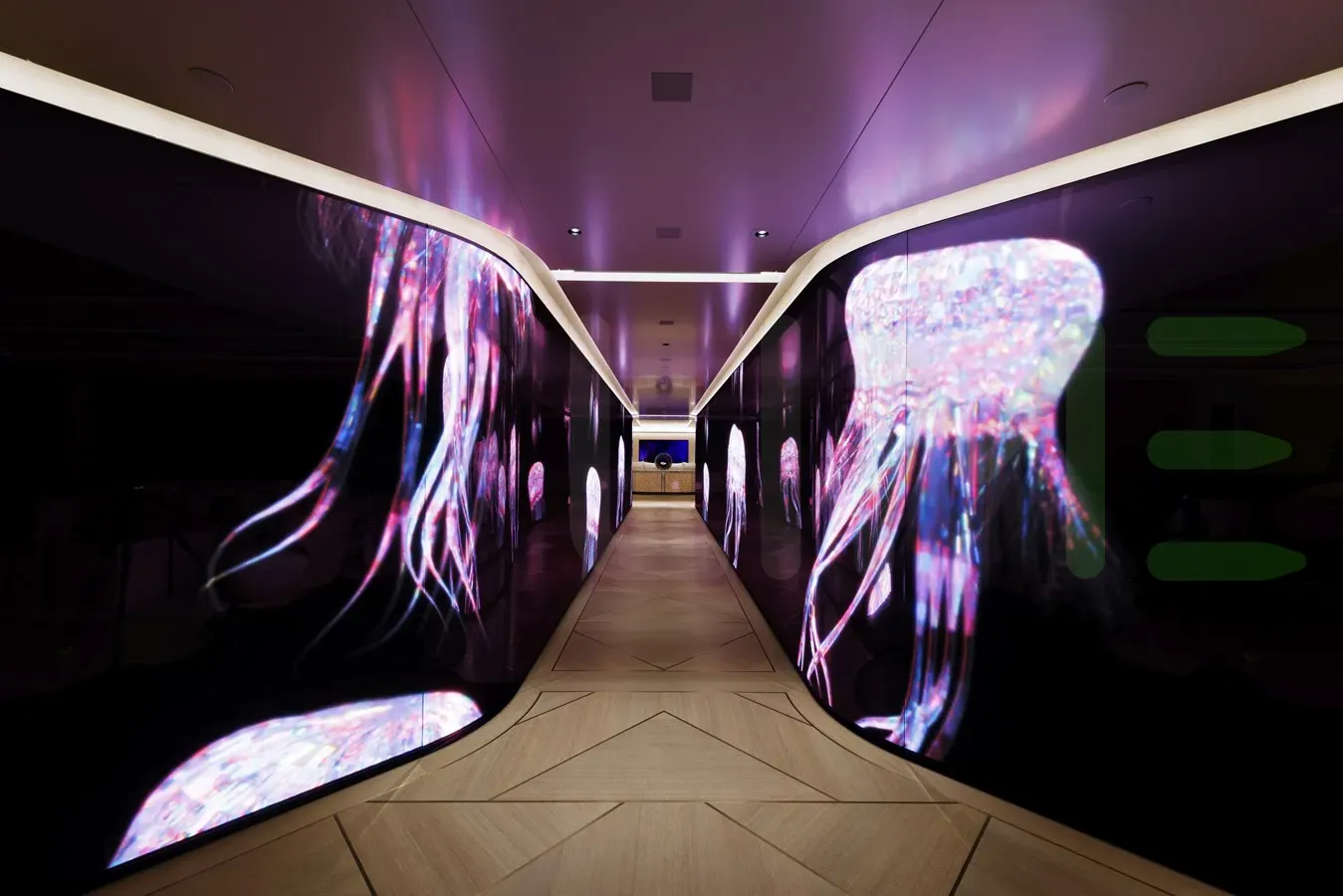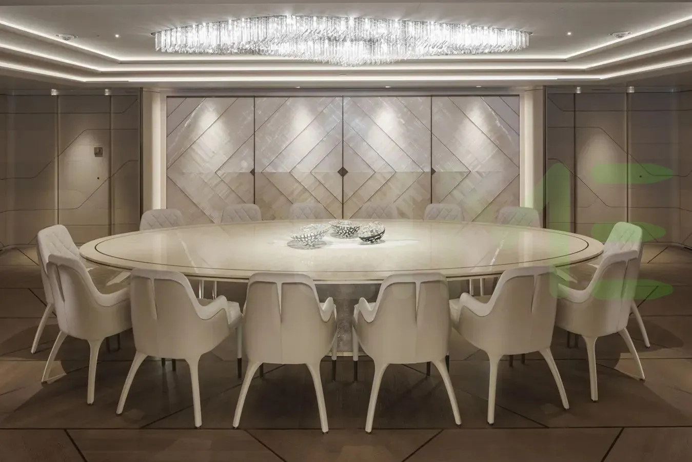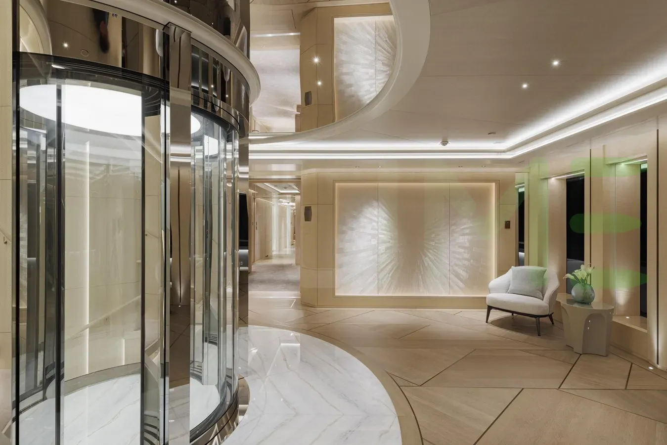 Her features include conference facilities, beauty salon, spa, beauty salon, satellite communications, underwater lights, beach club, gym, deck jacuzzi, WiFi and air conditioning.