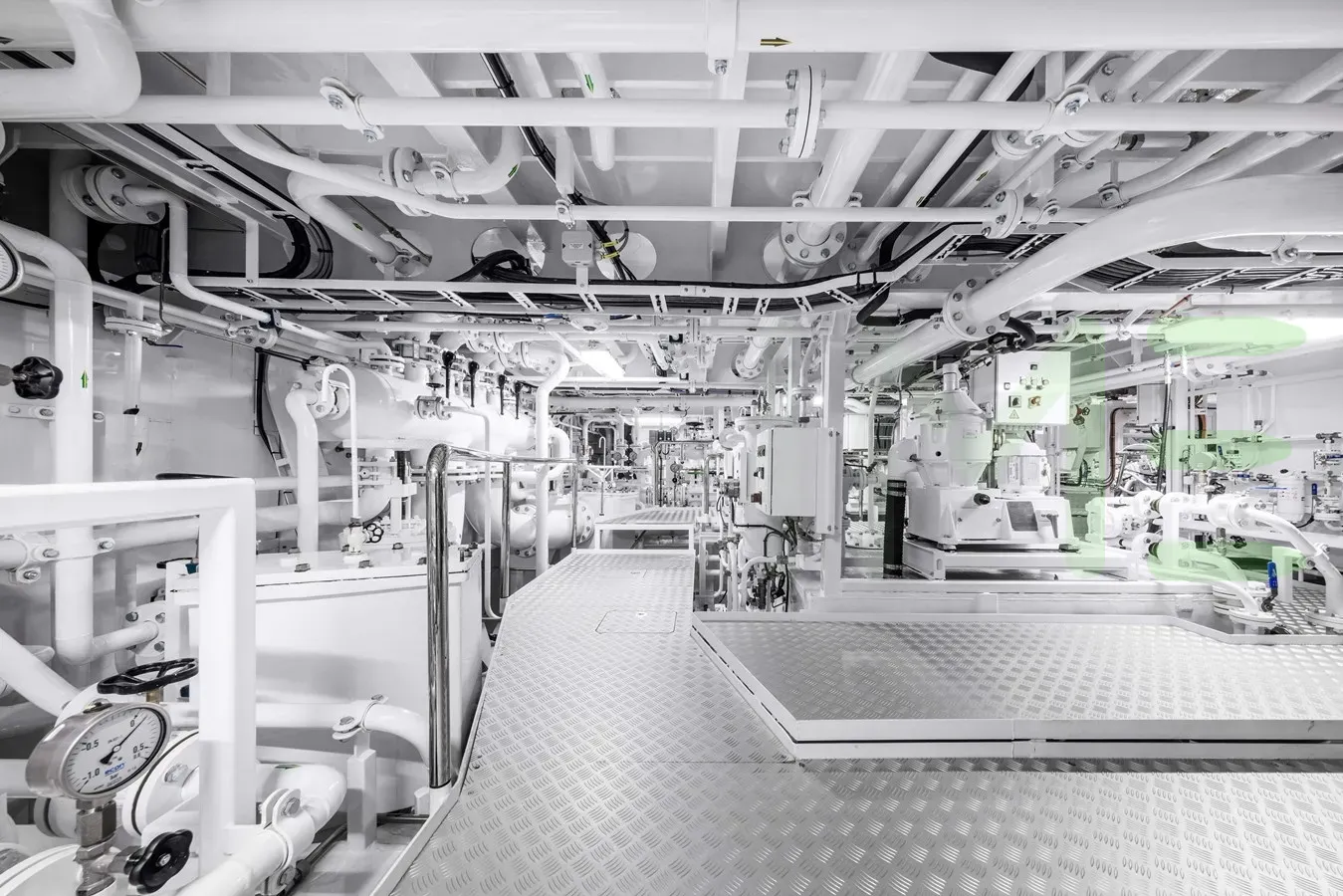 Measuring in at a length of 345' 4" (105.26m) and boasting a beam of 48' 6" (14.78m), H3's grandeur is matched only by her spaciousness. Her draft of 15' 1" (4.6m) allows for an interior volume of 3,521 GRT (gross registered tons) which contributes to her exceptional performance on the open ocean.