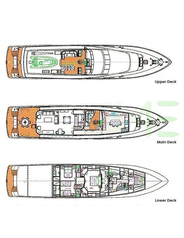 Request plans that include the layout of staterooms, guest areas, and outdoor spaces, as well as crew quarters and work areas.