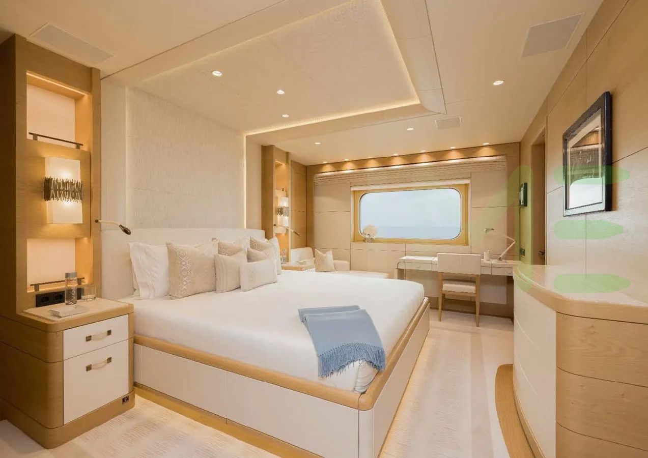 Her features include piano, spa, beauty salon, satellite communications, underwater lights, beach club, gym, deck jacuzzi, WiFi and air conditioning.