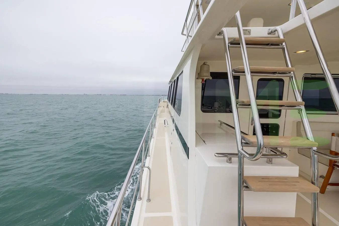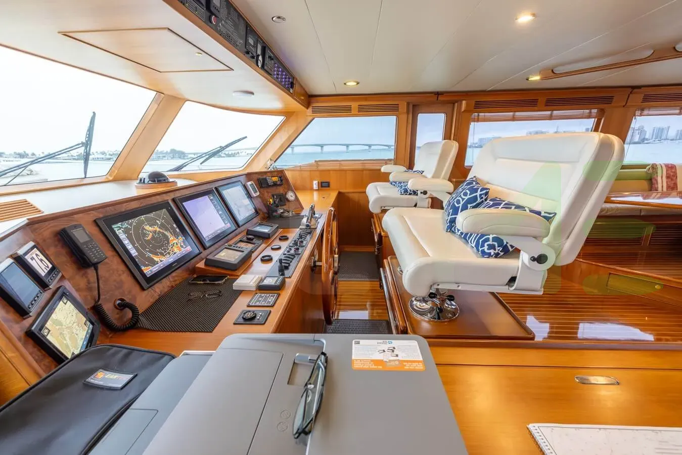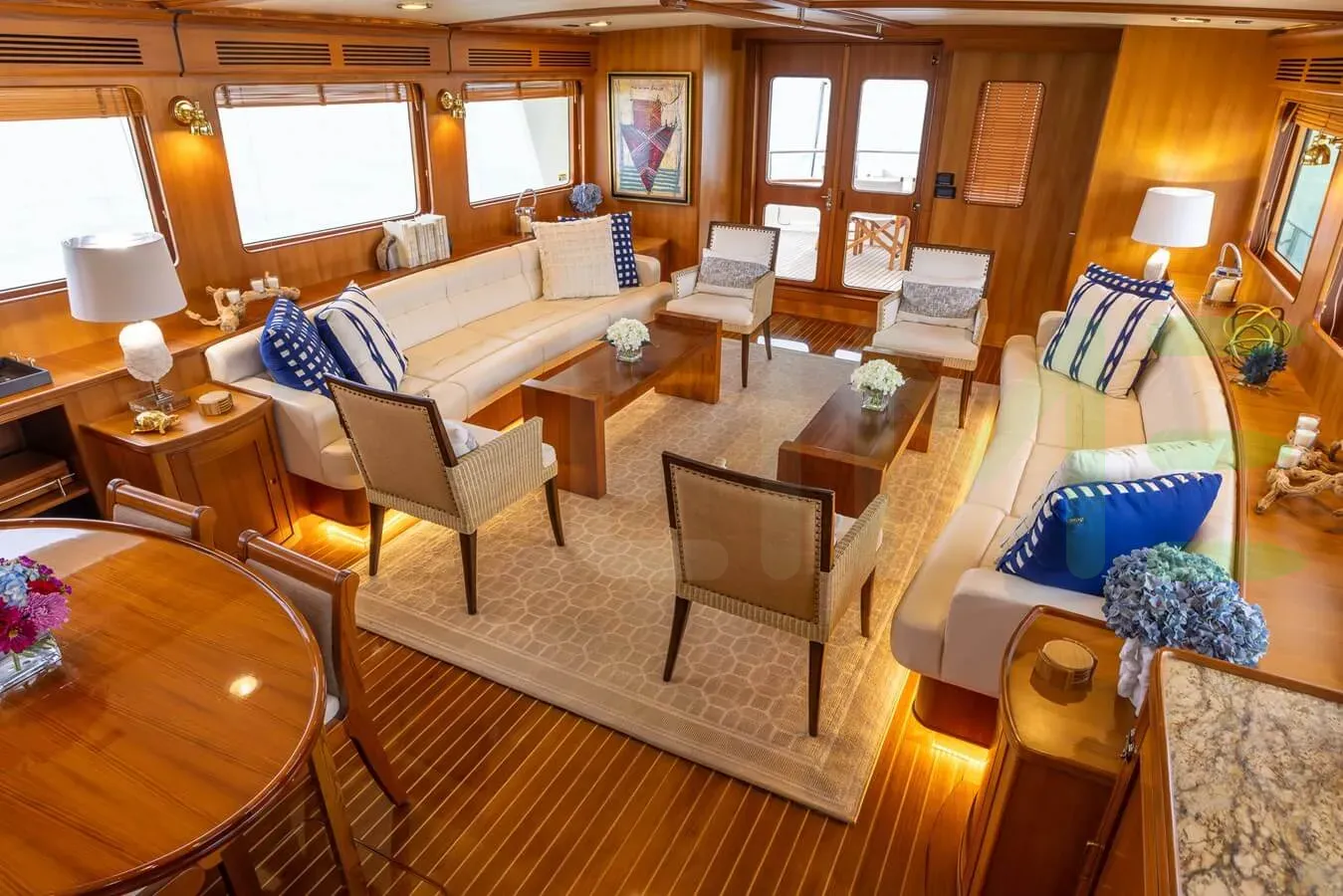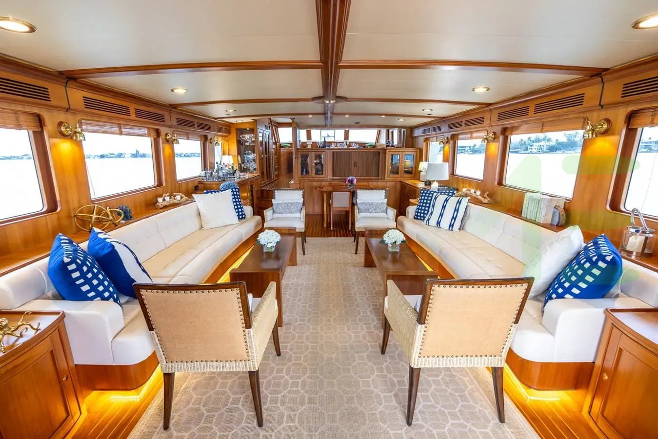 Measuring in at a length of 90' (27.43m) and boasting a beam of 21' 6" (6.55m), INDIGO's grandeur is matched only by her spaciousness. Her draft of 5' 3" (1.6m) allows for an interior volume of 135 GRT (gross registered tons) which contributes to her exceptional performance on the open ocean.