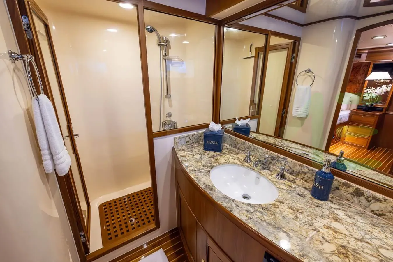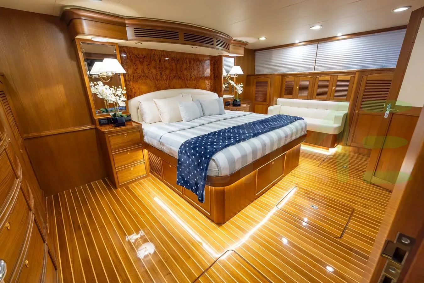 The styling of the INDIGO yacht features exterior design by Marlow Yachts and interior design by Marlow Yachts. Up to 7 guests can be accommodated on board the superyacht INDIGO in 4 staterooms. INDIGO also has accommodations for 4 crew members, including the yacht’s captain.