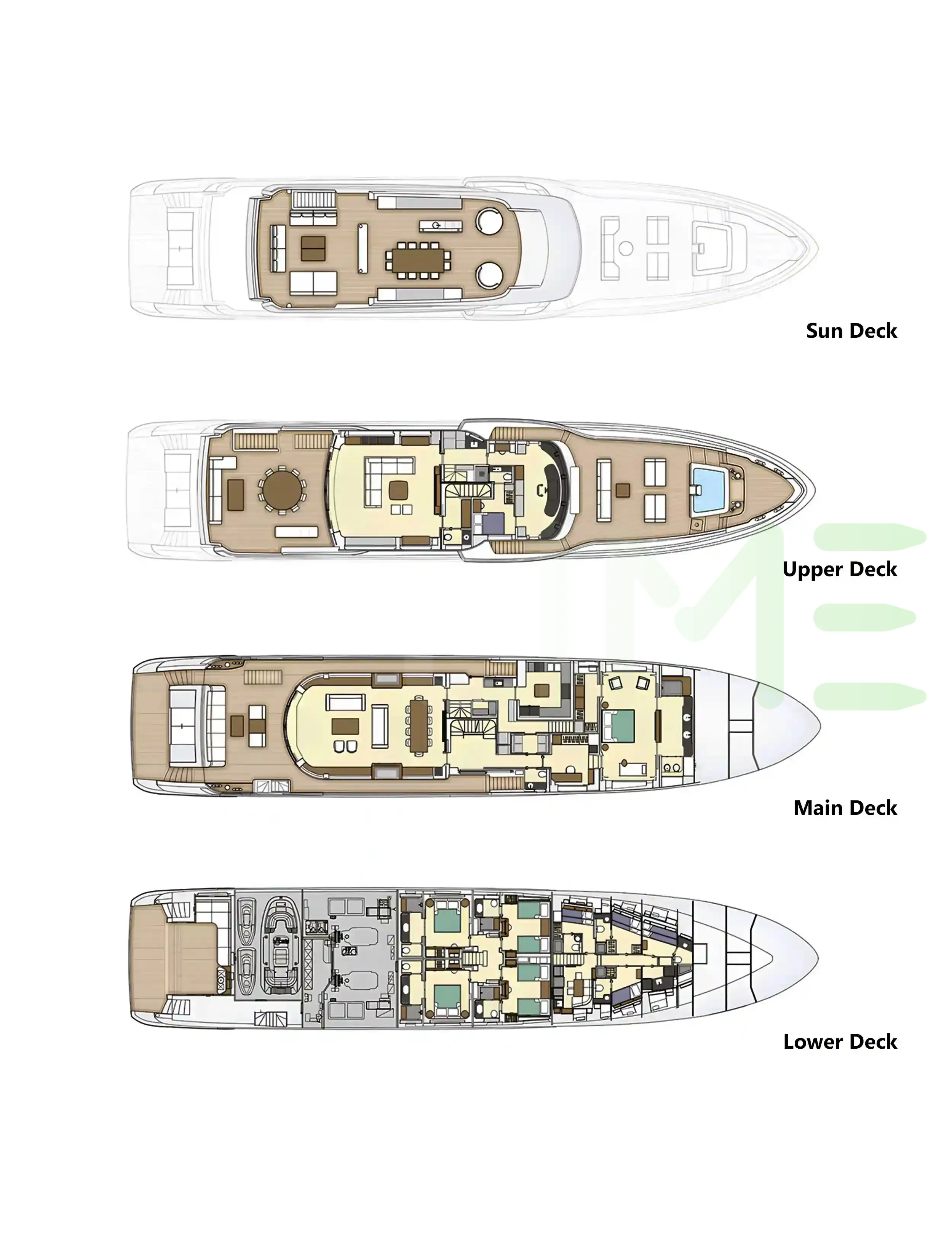 Request plans that include the layout of staterooms, guest areas, and outdoor spaces, as well as crew quarters and work areas.