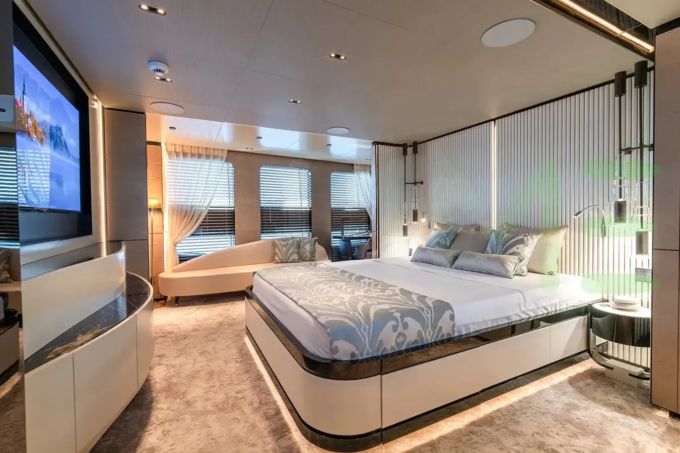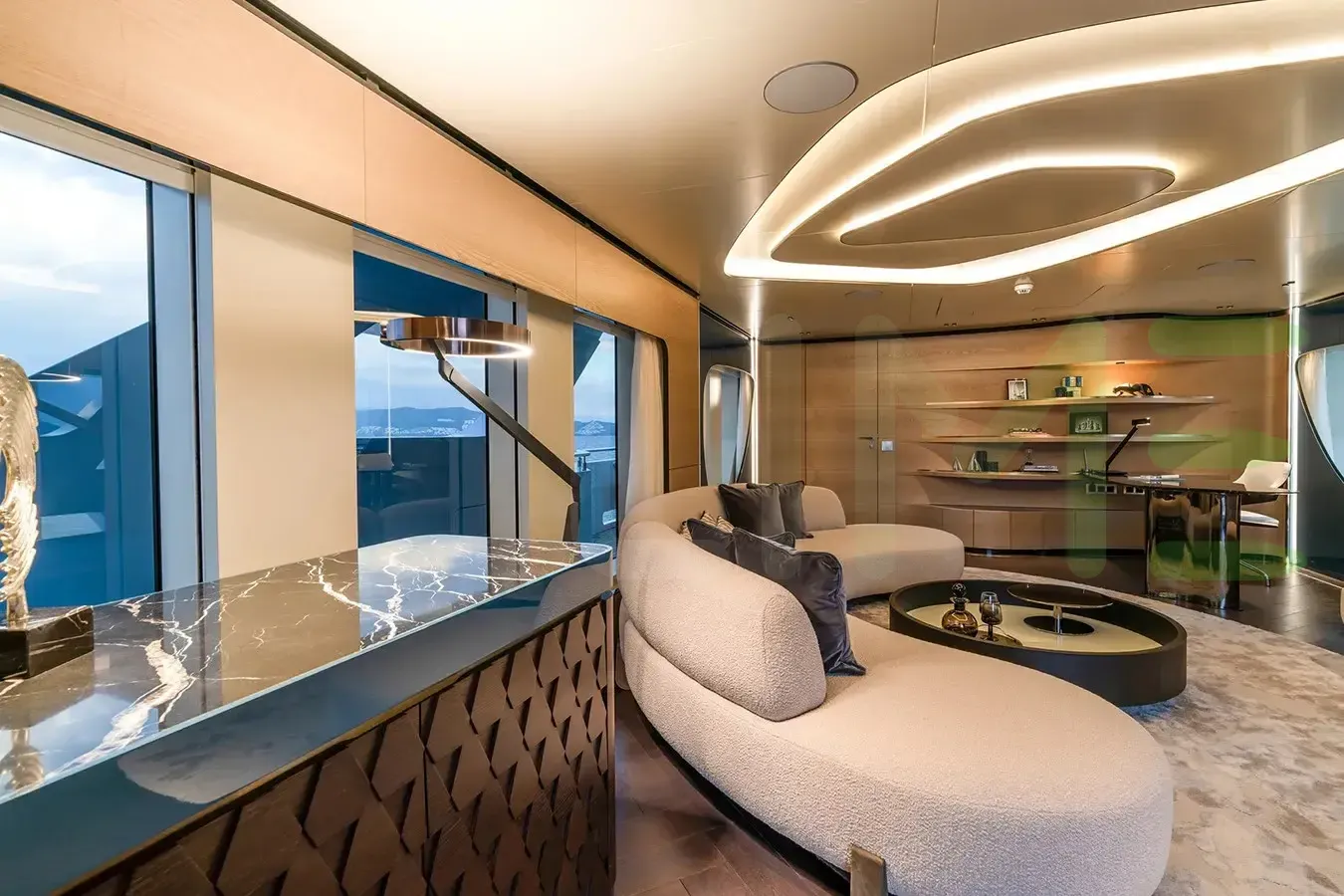 The styling of the KASIF yacht features exterior design by Unique Yacht Design and interior design by Hot Lab. Up to 10 guests can be accommodated on board the superyacht KASIF in 5 staterooms. KASIF also has accommodations for 6 crew members, including the yacht’s captain.