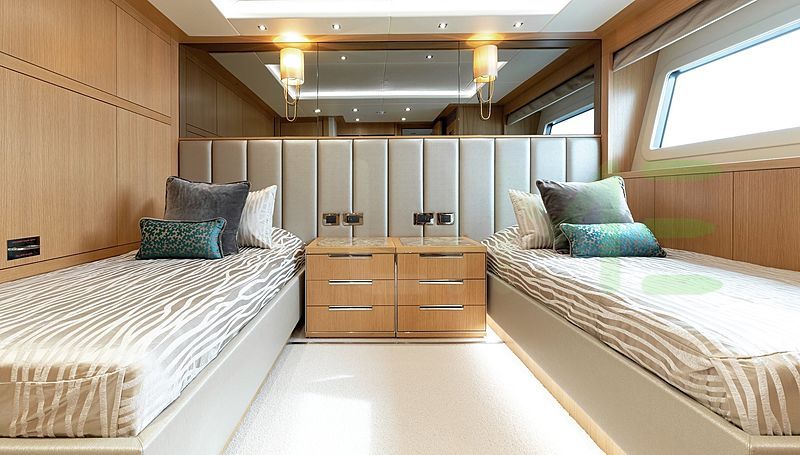 The styling of the LADY G yacht features exterior design by Sunseeker and interior design by Sunseeker. Up to 10 guests can be accommodated on board the superyacht LADY G in 5 staterooms. LADY G also has accommodations for 8 crew members, including the yacht’s captain.