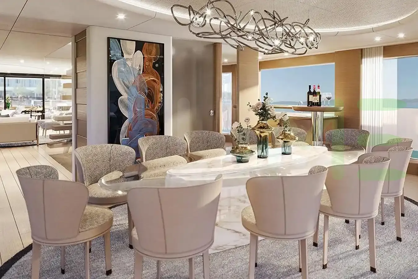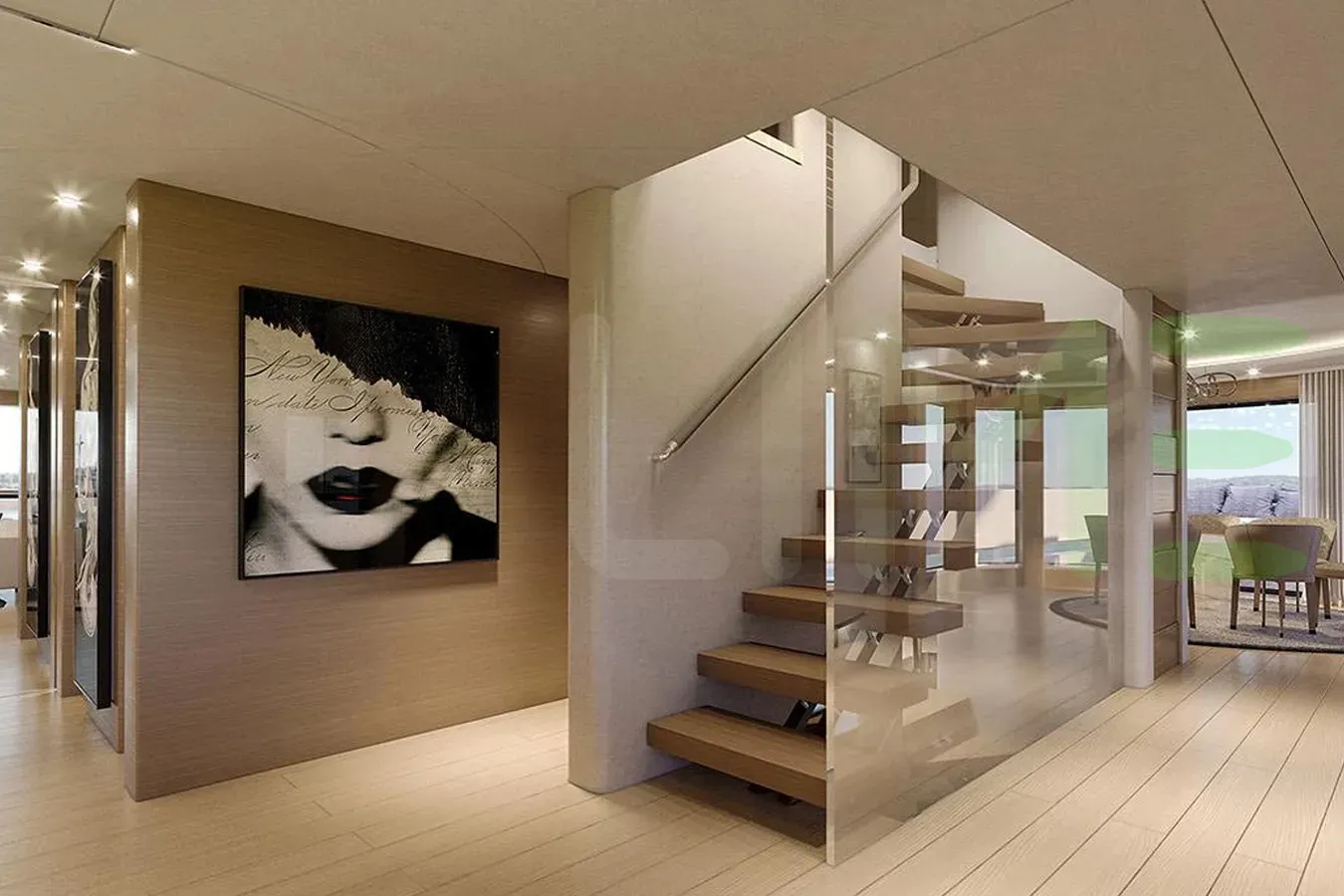 The styling of the M.BYOND yacht features exterior design by Stefano Righini Design and interior design by Benetti SpA. M.BYOND also has accommodations for 7 crew members, including the yacht’s captain.