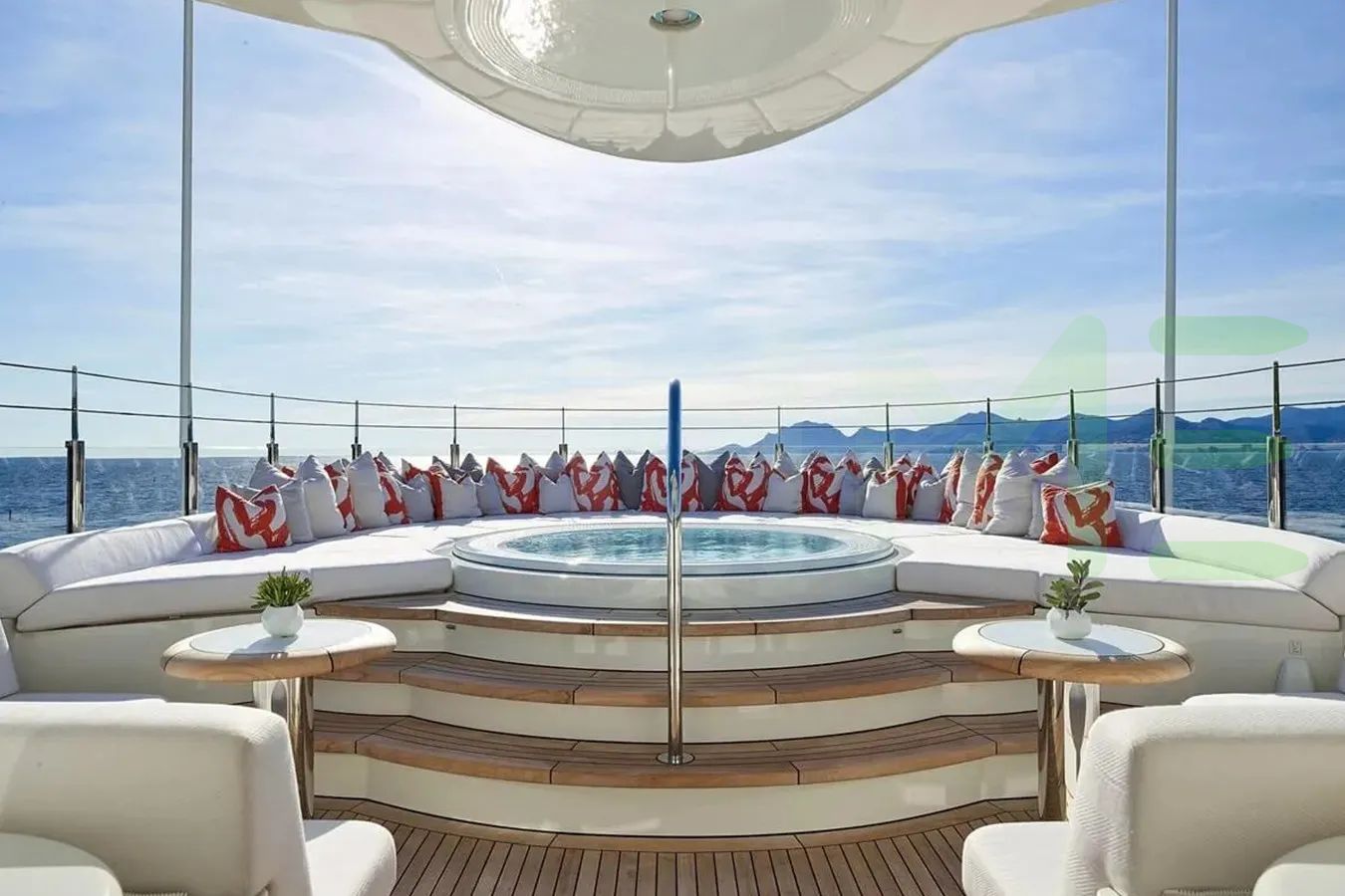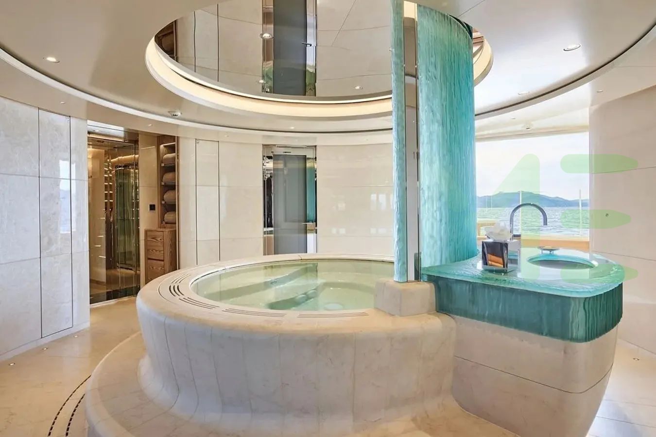 Her features include a spa, beauty salon, elevator, underwater lights, beach club, gym, deck jacuzzi, WiFi and air conditioning.