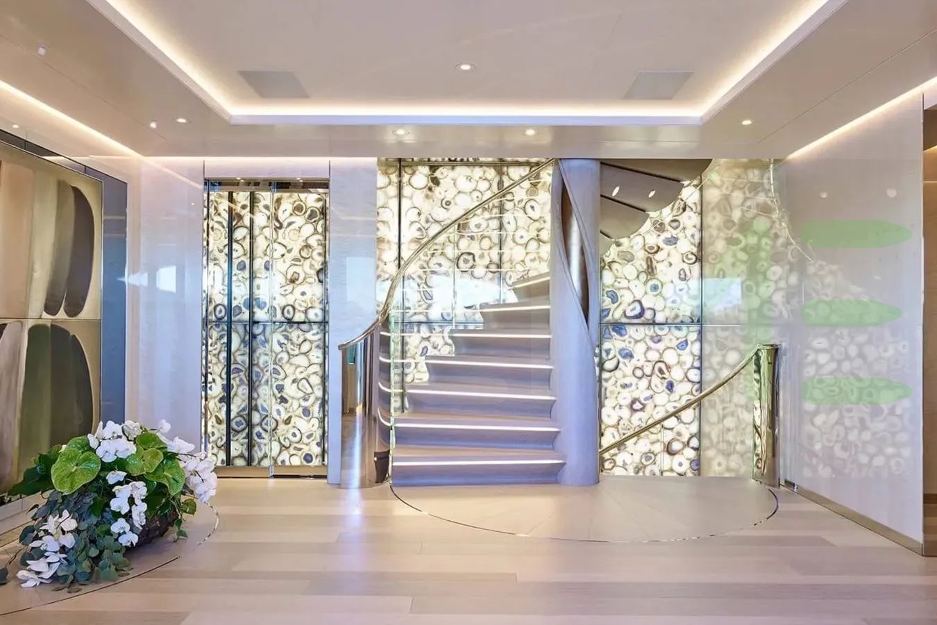 The styling of the NEW DREAM yacht features exterior design by Tim Heywood Design Ltd. and interior design by Winch Design. Up to 12 guests can be accommodated on board the superyacht NEW DREAM in 6 staterooms. NEW DREAM also has accommodations for 19 crew members, including the yacht’s captain.