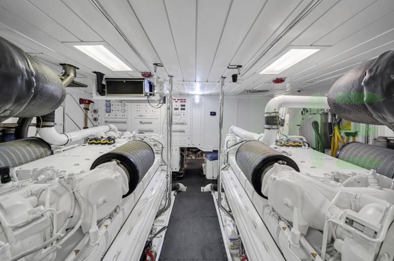 Powered by two Caterpillar main engines, each generating 1,361 horsepower, for a total combined output of 2,722 horsepower. Notably, the PEACEKEEPER yacht is one of 2,647 yachts greater than 65’(19m) with Caterpillar engines.