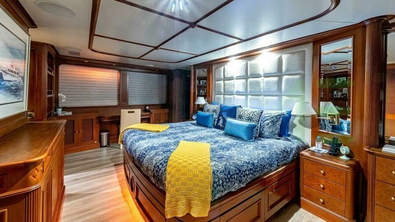 Measuring in at a length of 115' (35.05m) and boasting a beam of 25' (7.62m), POUR ANOTHER 's grandeur is matched only by her spaciousness. Her draft of 6' 4" (1.92m) allows for an interior volume of 247 GRT (gross registered tons) which contributes to her exceptional performance on the open ocean.