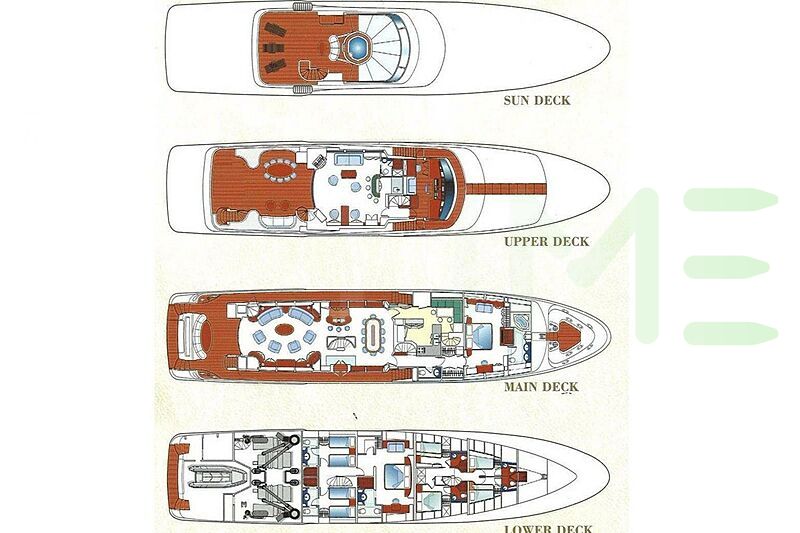 Request plans that include the layout of staterooms, guest areas, and outdoor spaces, as well as crew quarters and work areas.