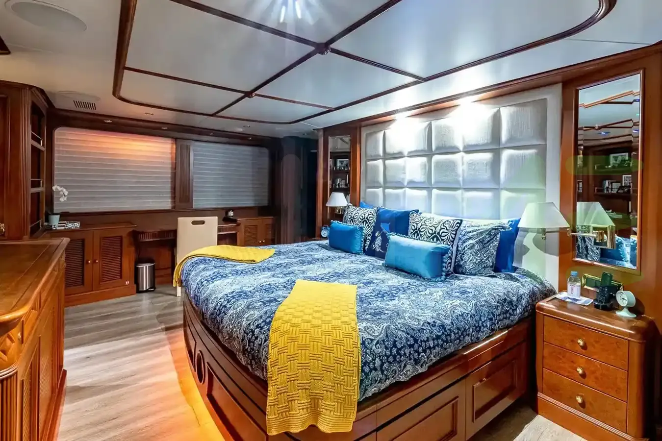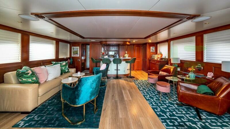 Her features include a gym, deck jacuzzi, WiFi and air conditioning.