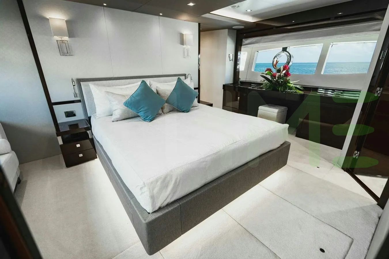 The styling of the PURA VIDA yacht features exterior design by Sunseeker and interior design by Sunseeker. Up to 10 guests can be accommodated on board the superyacht PURA VIDA in 4 staterooms. PURA VIDA also has accommodations for 4 crew members, including the yacht’s captain.