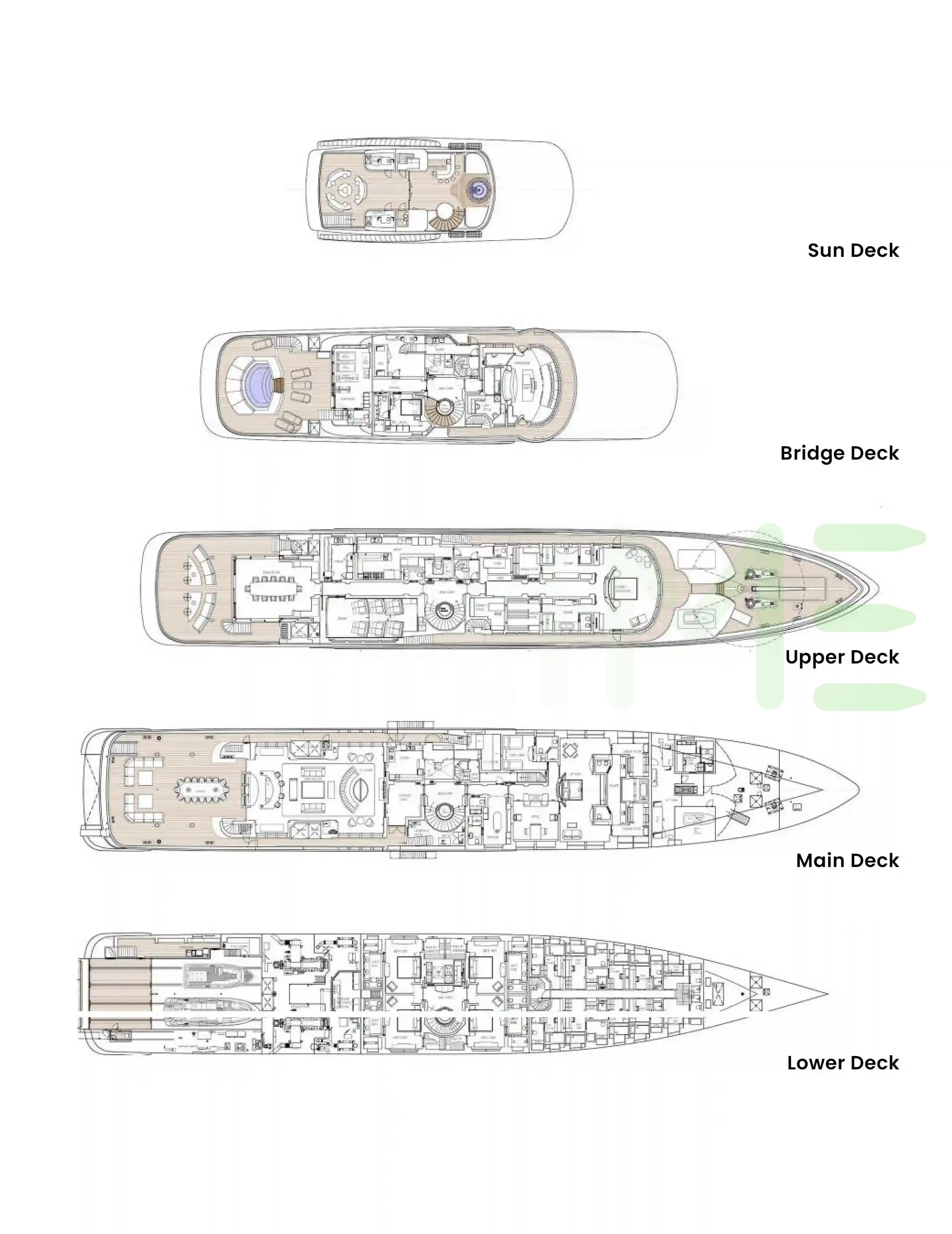 Request plans which include the layout of staterooms, guest areas, and outdoor spaces, as well as crew quarters and working spaces.