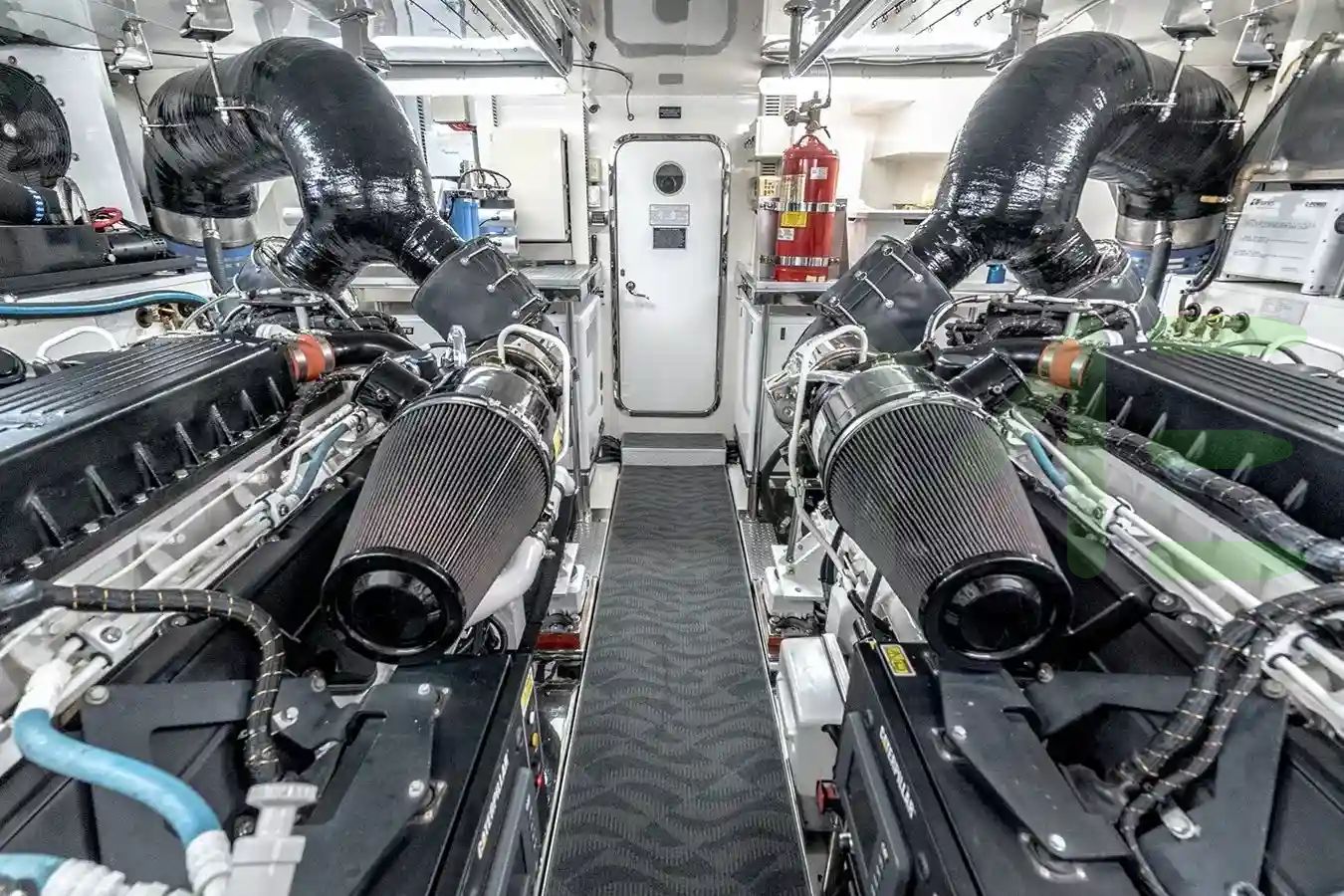 Powered by two Caterpillar main engines, each generating 1,435 horsepower, for a total combined output of 2,870 horsepower. Notably, the SOUNDINGS yacht is one of 2,664 yachts greater than 65’(19m) with Caterpillar engines.